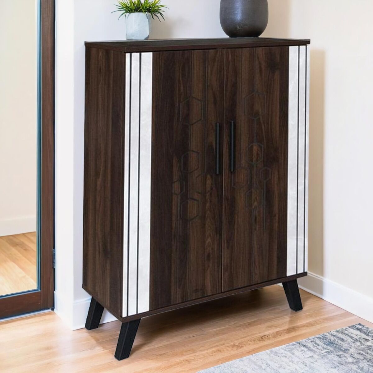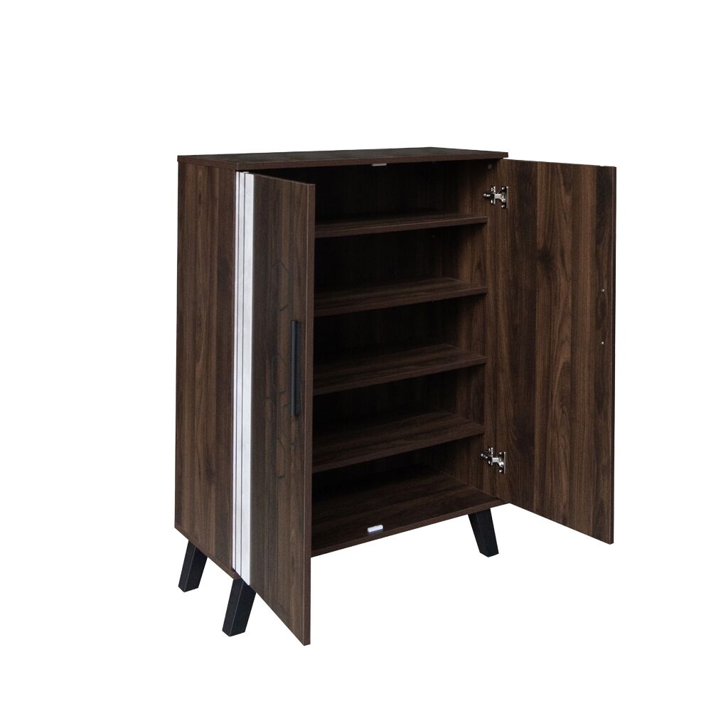 خزانة أحذية بابين خشب ماليزي مايلي - بني وأبيض