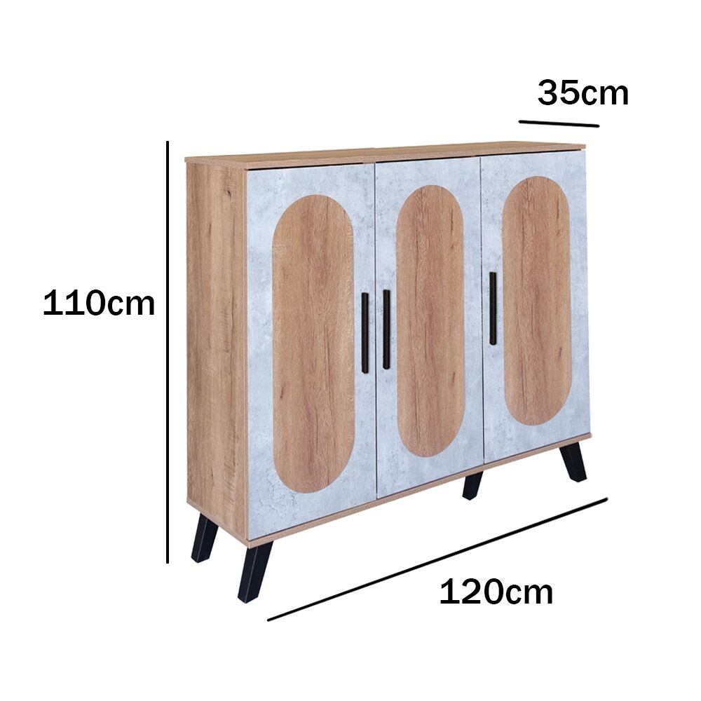 خزانة أحذية 3 أبواب خشب ماليزي فيودور - خشبي ورمادي
