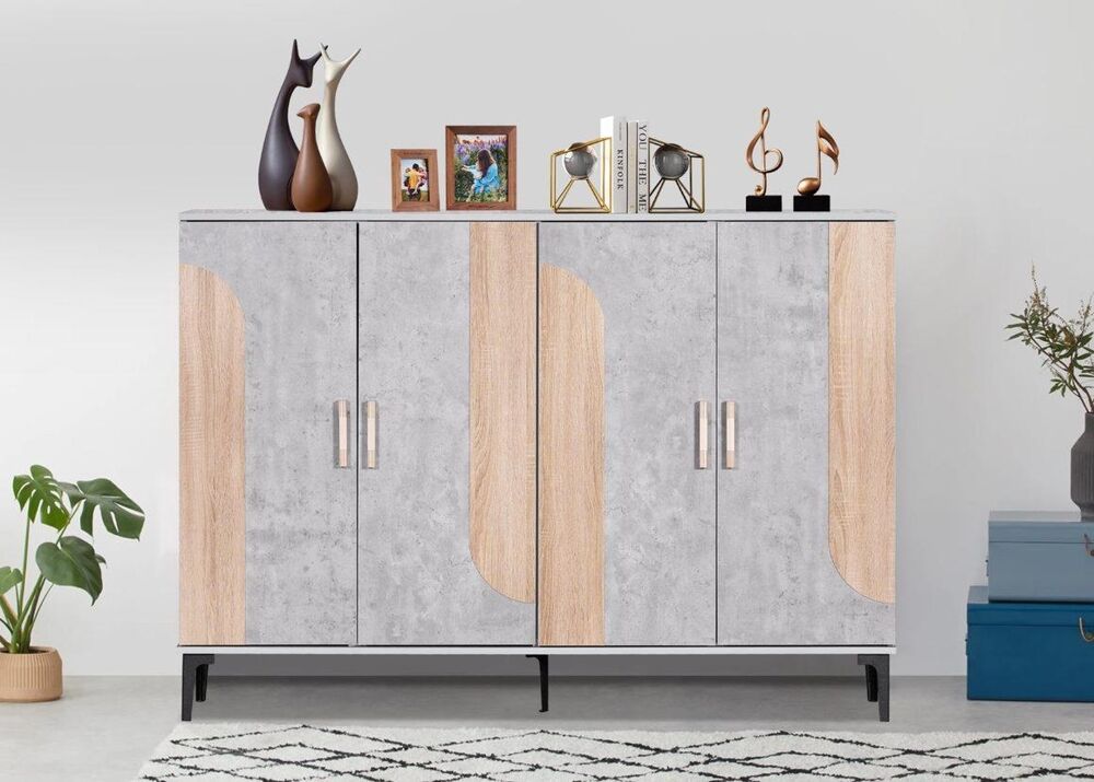 أنت تراجع:خزانة أحذية 4 ابواب يان - رمادي فاتح وخشبي