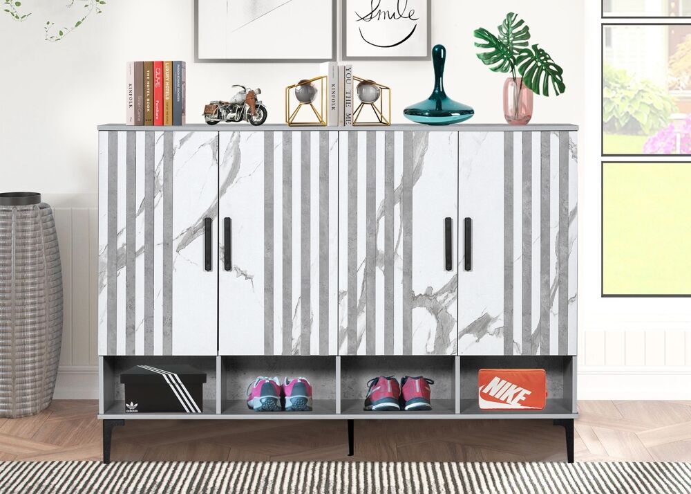 أنت تراجع:خزانة احذية 4 ابواب مع ارفف ميناس - ابيض ورصاصي