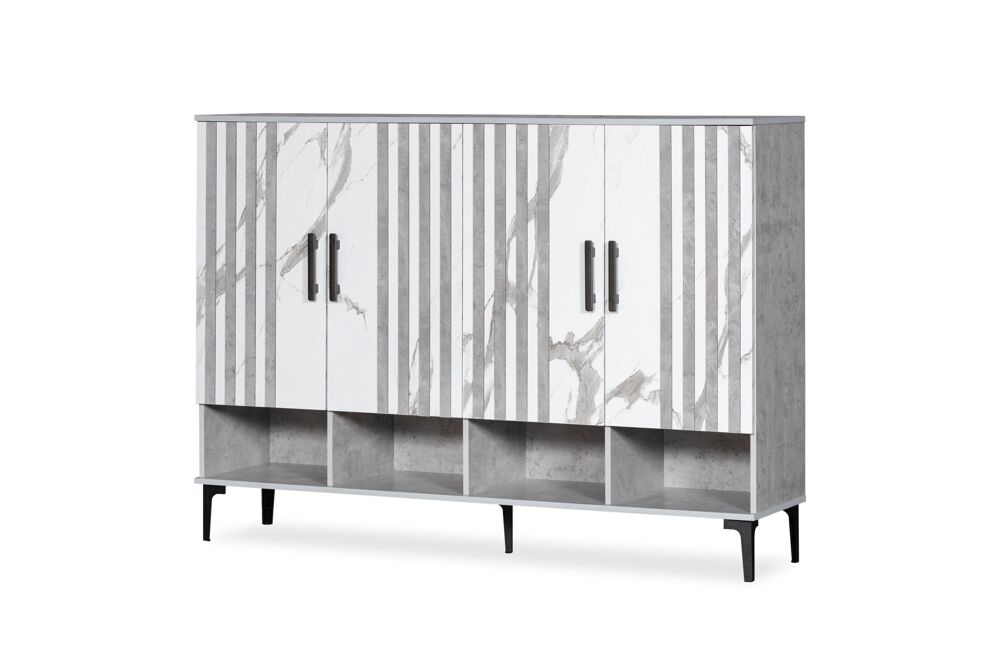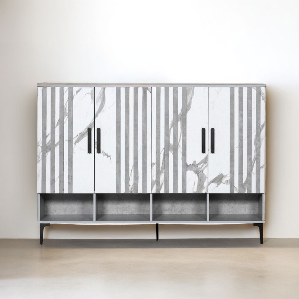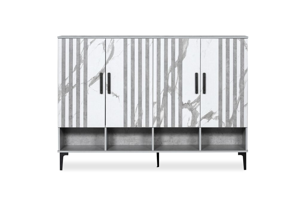 خزانة احذية 4 ابواب مع ارفف ميناس - ابيض ورصاصي