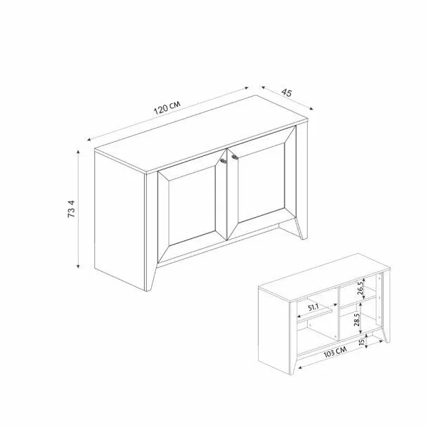 | مقاسات الخزانة الجانبية | الارتفاع : 73.4 سم * العرض : 120 سم * العمق: 45 سم |