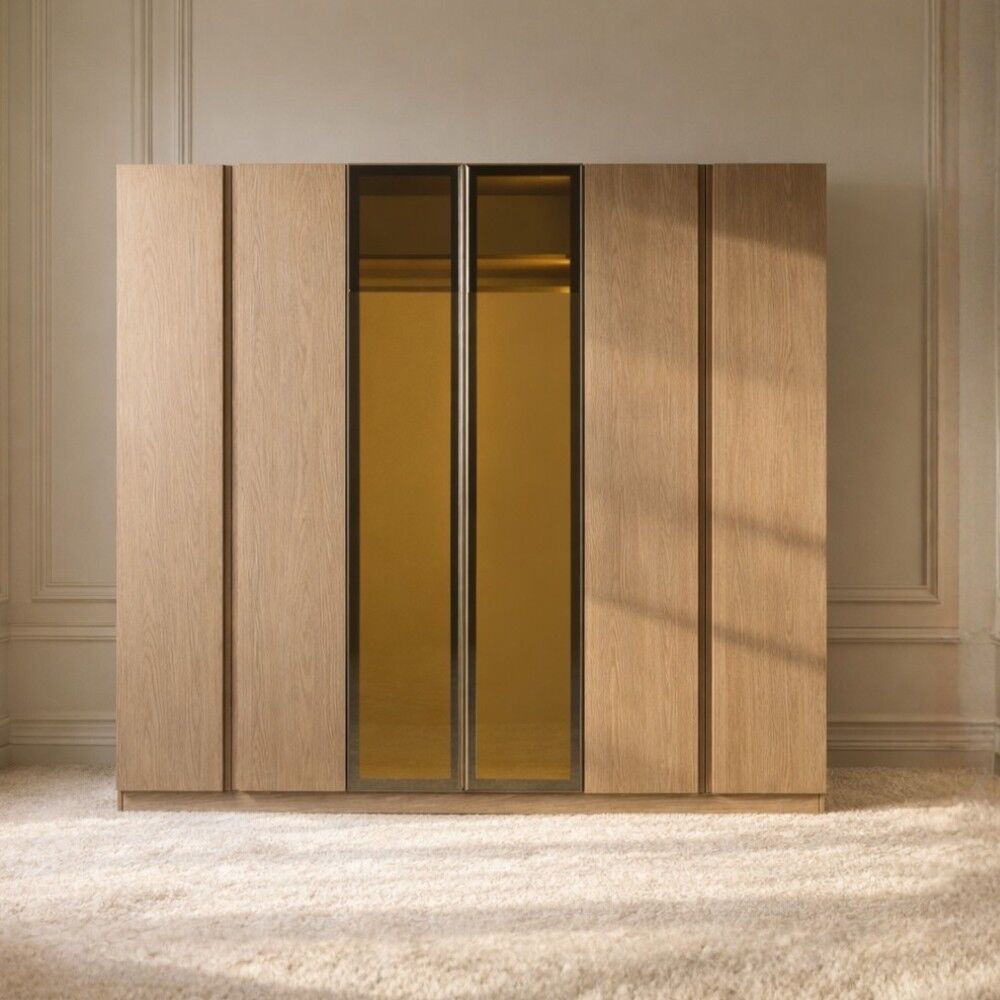 | مميزات المنتج | ابواب الزجاج مقاومة للكسر بدرجة عالية مع اضاءة داخلية، مما يمنح الدولاب متانة وأمانًا أكبر للاستخدام اليومي. |