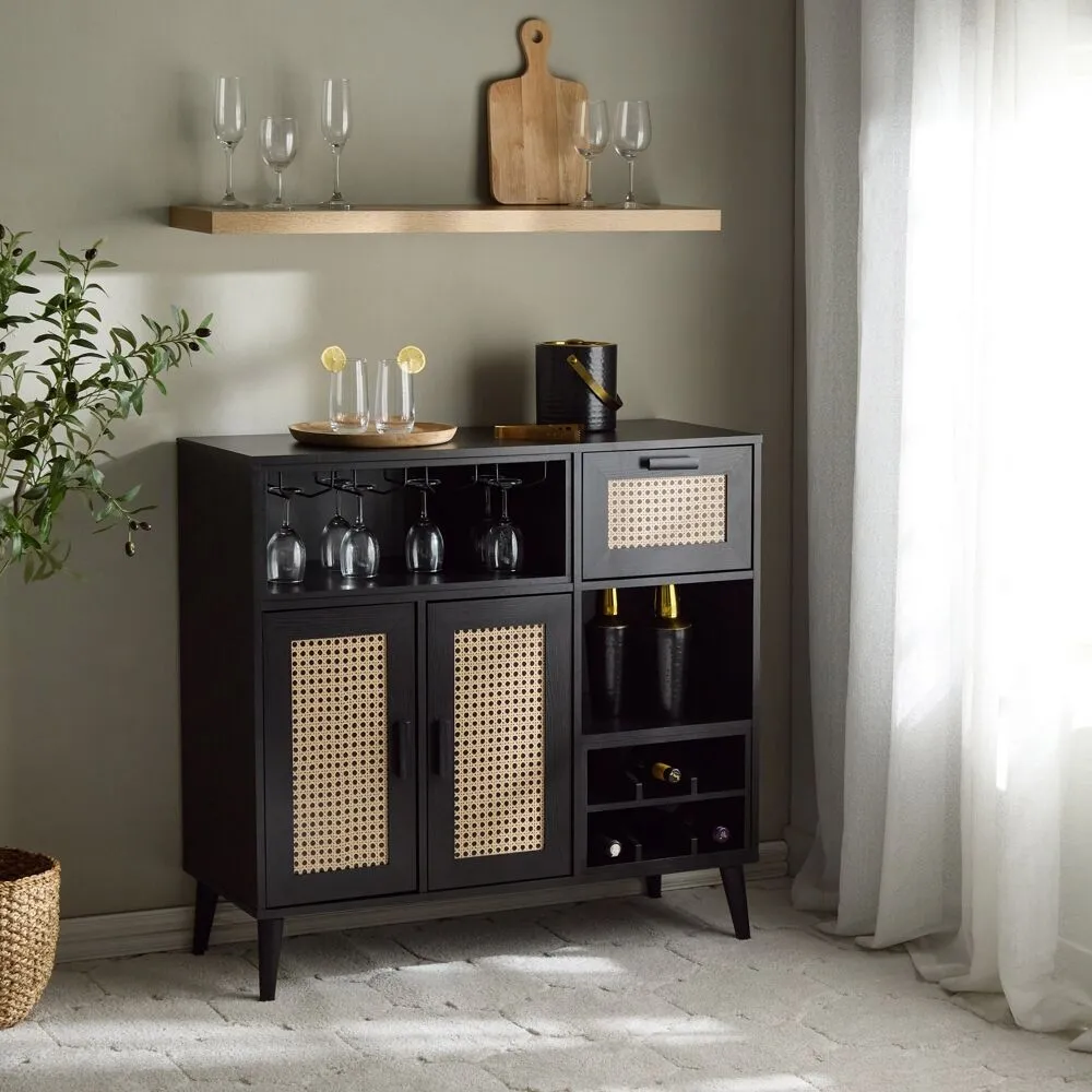 جددي مطبخك بإضافة خزانة القهوة الرائعة هذه. توفر مساحة تخزين واسعة لأساسيات مطبخك، وتتضمن عدد من الأدراج والأرفف لتوفير طريقة مريحة لتنظيم أدوات المطبخ الخاصة بك. مصنوعة من الخشب المتين، وبتشطيب مطفي ساحر يضفي على المطبخ مظهرًا أنيقًا ومعاصرًا.