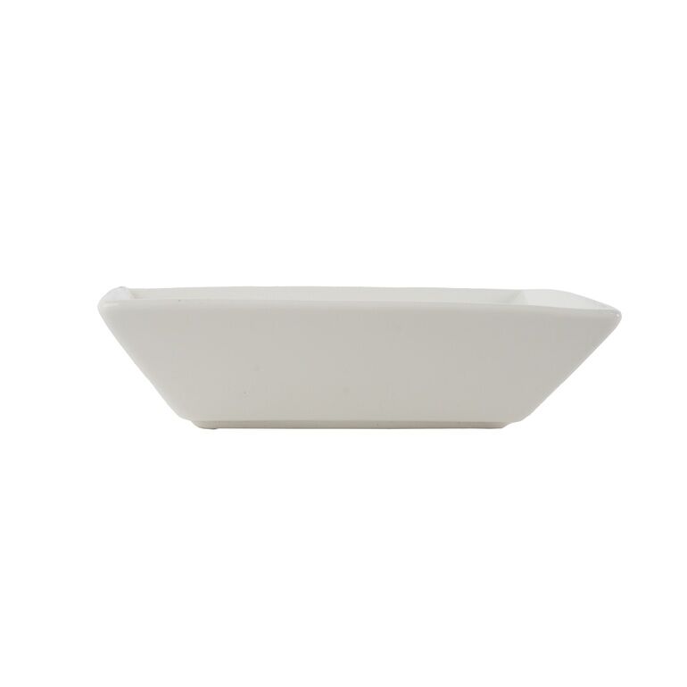 زبدية مستطيلة الشكل مصنوعة من البورسلان باللون الأبيض ذو عمق مناسب لإحتواء مختلف الأصناف, تعتبر إختيار مثالي لتقديم وتنسيق الأطعمة بشكل جميل ومنظم