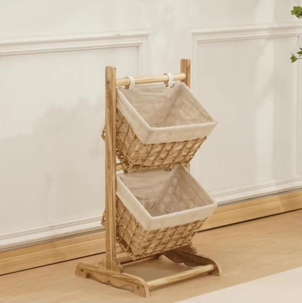 المميزات: مصنوع من خشب طبيعي تصميم عمودي موفّر للمساحة مثالي للأماكن الصغيرة. 2 سلال يدوية الصنع من الحبال الطبيعية المتينة. بطانة قماش ناعمة وقابلة للإزالة والتنظيف. تصميم أنيق يتماشى مع جميع أنماط الديكور. متعدد الاستخدام: ملابس، ألعاب، مناشف، مستلزمات الأطفال، والمزيد!