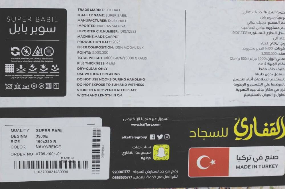 | إرشادات العناية والتنظيف | تنظيف جاف فقط - لا تعرضها على الشمس والرطوبة - يخزن في مكان جاف جيد التهوية |