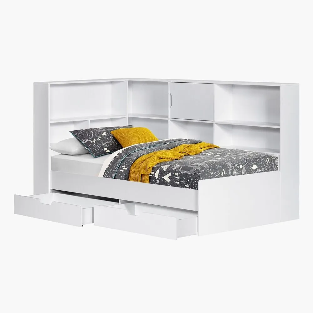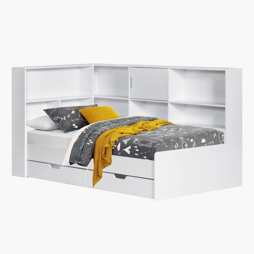 أنت تراجع:سرير فردي برف تخزين ولوح رأسي مع درجين من فانيلا - 90x200 سم