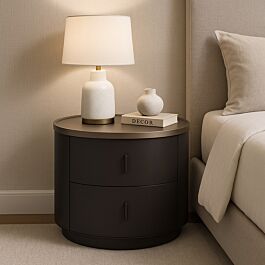 طاولة سرير جانبية ايفا خشبية و أرجل ستيل - رمادي وبني