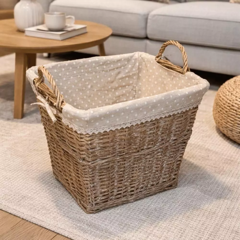 سلة خوص برايف : سلة خوص أنيقة مع بطانة قطنية مصنوعة من خامات طبيعية تمنحها طابعًا ريفيًا دافئًا يضيف لمسة جمالية وهادئة لأي مساحة داخل المنزل. تتميز بتصميم عملي وبسيط يجعلها مناسبة لتنظيم الأغراض اليومية أو حفظ المخبوزات أو استخدامها لتقديم الهدايا بطريقة مرتبة وأنيقة. كما يمكن توظيفها كقطعة ديكور تضيف إحساسًا طبيعيًا في المطبخ أو غرفة المعيشة، لتجمع بين الجمال والوظيفة في تصميم واحد عملي وأنيق.