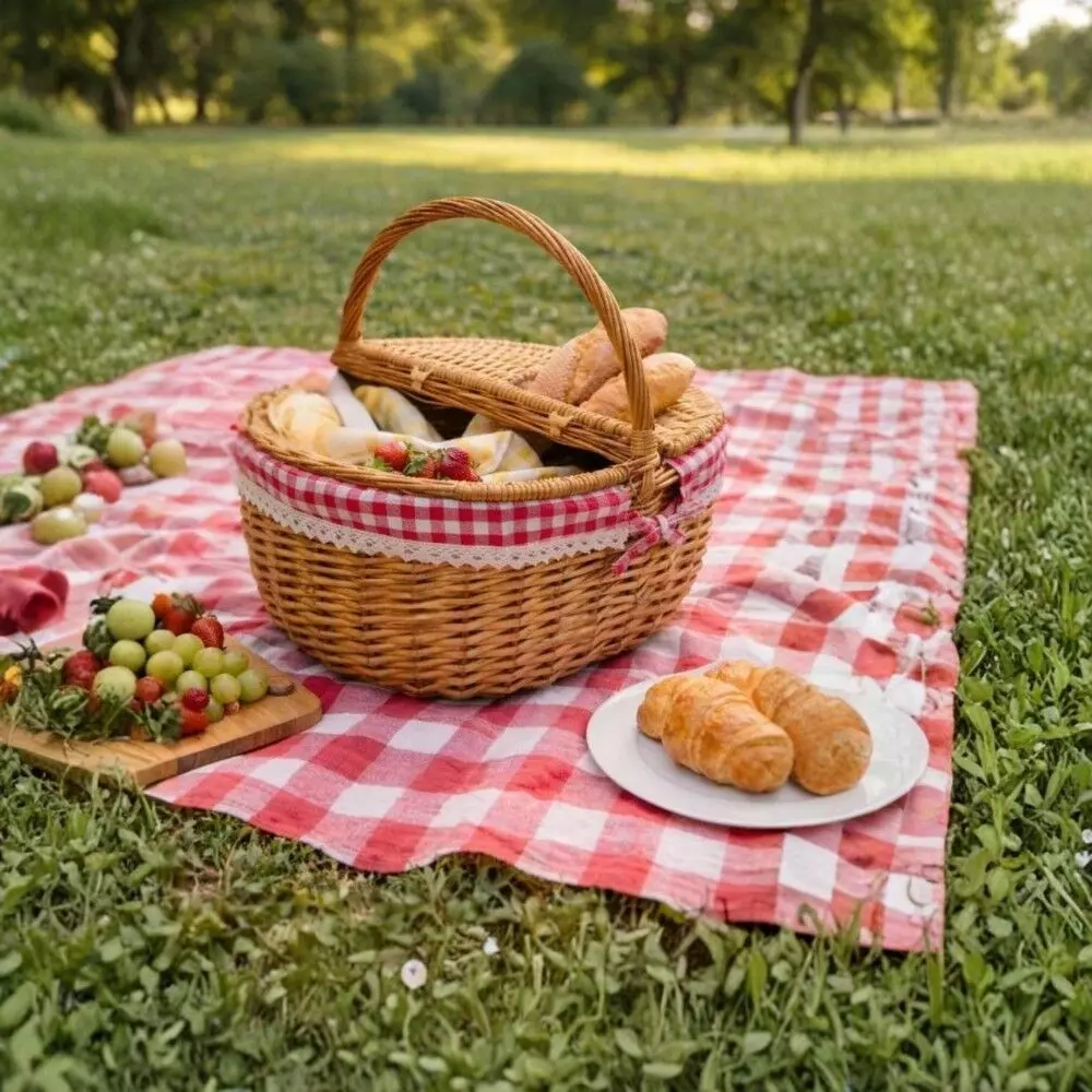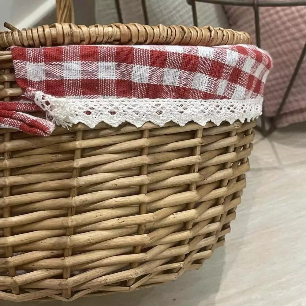 سلة رحلات بغطاء بيرلا - 47X35 سم : سلة خوص بتصميم ريفي أنيق تجمع بين الجمال والعملية، مصنوعة يدويًا من خامات طبيعية تمنحها طابعًا دافئًا ومميزًا ينسجم مع مختلف أنماط الديكور. تتميز بغطاءين متقابلين ومقبض علوي يسهل حملها، مع بطانة قماشية بنقشة مربعات تضيف لمسة كلاسيكية جذابة ولمسة ناعمة من التفاصيل. يمكن استخدامها لتنظيم الأغراض المنزلية أو حفظ المخبوزات أو تقديم الهدايا بطريقة أنيقة، كما تعد خيارًا مثاليًا للنزهات والرحلات أو حتى كقطعة ديكور تضيف إحساسًا طبيعيًا وهادئًا للمطبخ أو غرفة المعيشة، لتجمع بين الاستخدام اليومي والشكل الجمالي في آن واحد.