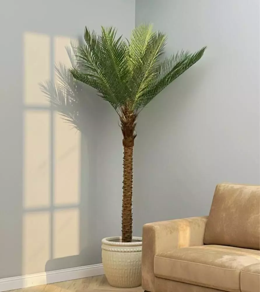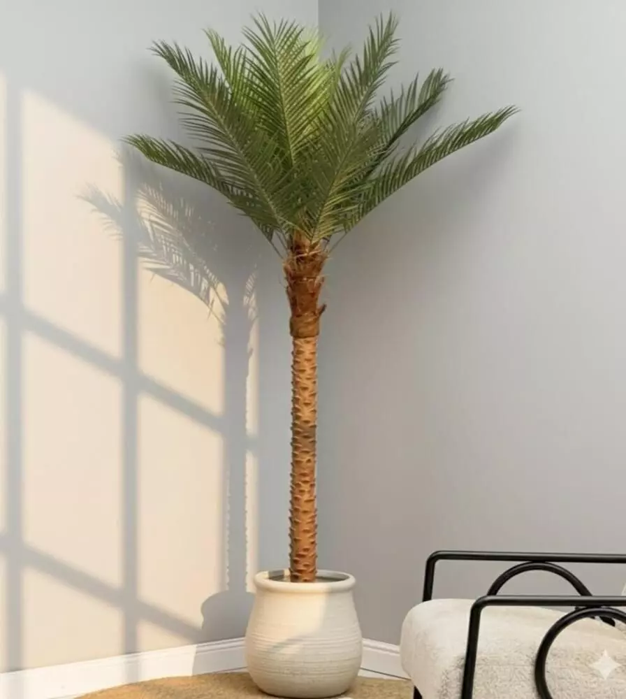 شجرة صناعية خضراء سايس ريفولتا (سيكاس ريفولوتا) بارتفاع 260 سم هي قطعة ديكور فاخرة تمنح المكان لمسة استوائية راقية وحضورًا طبيعيًا مميزًا يضيف إحساسًا بالهدوء والفخامة. تأتي بتصميم واقعي دقيق يعكس تفاصيل أوراق السيكاس الريشية وساقها المتين، مما يجعلها تبدو كنبتة طبيعية تضفي توازنًا بصريًا وأناقة على المساحات الداخلية الكبيرة. لا تحتاج إلى أي ري أو عناية، وتحتفظ بشكلها ولونها لفترات طويلة، مما يجعلها خيارًا عمليًا للديكور الدائم. تنسجم بسهولة مع أنماط الديكور العصري والكلاسيكي، وتناسب غرف المعيشة والمداخل والمكاتب والفنادق واللوبيات، كما تعمل كعنصر ديكوري بارز يضيف عمقًا بصريًا ولمسة طبيعية راقية لأي مساحة.