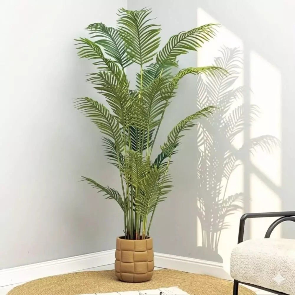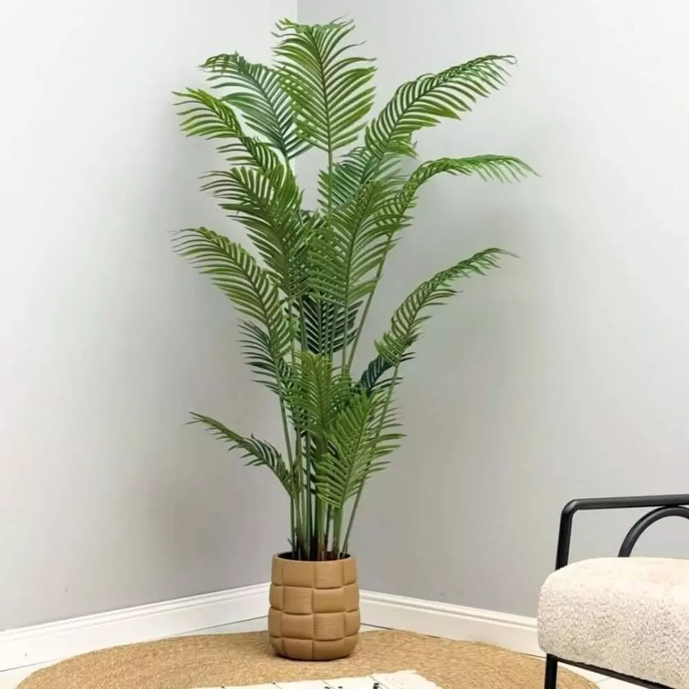 شجرة صناعية آريكاس بارتفاع 180 سم هي قطعة ديكور أنيقة تمنح المكان لمسة خضراء طبيعية نابضة بالحياة بتصميم واقعي يحاكي شكل شجرة الآريكا بتفاصيل دقيقة وأوراق خضراء زاهية تضيف إحساسًا بالانتعاش والهدوء. تتميز بأنها لا تحتاج إلى أي عناية أو سقي، مما يجعلها خيارًا عمليًا وجماليًا في نفس الوقت يناسب مختلف المساحات الداخلية مثل المنازل أو المكاتب أو الكافيهات أو صالات الاستقبال. بفضل حجمها اللافت وتناسق شكلها، تضيف حضورًا بصريًا جميلًا وتنسجم بسهولة مع الديكورات العصرية والكلاسيكية، كما يمكن استخدامها كقطعة ديكور مميزة تمنح أي زاوية طابعًا طبيعيًا راقيًا وثابتًا.