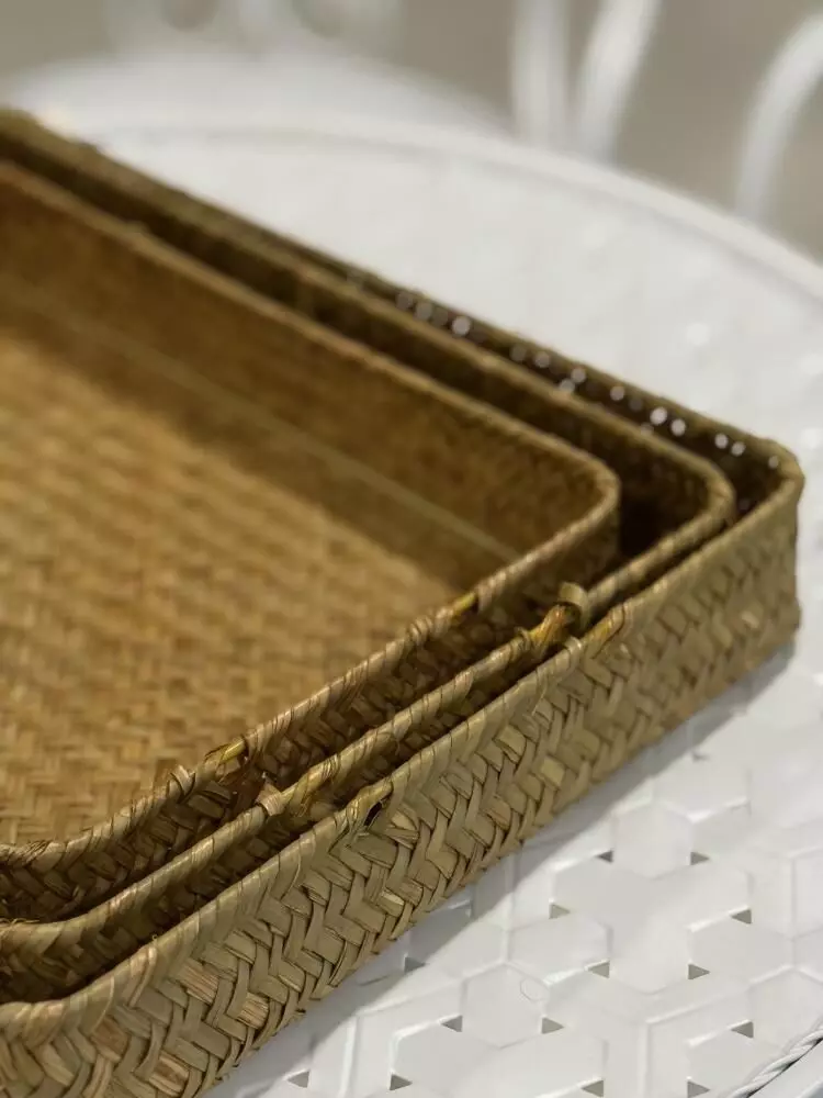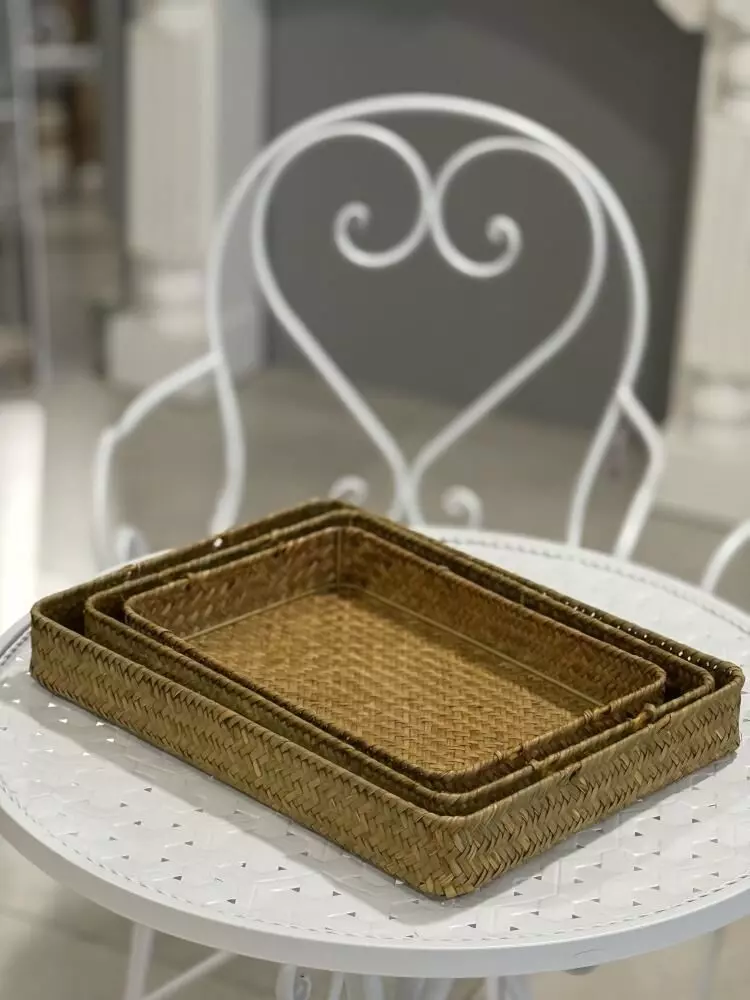 أضف لمسة من الجمال الطبيعي إلى منزلك مع طقم الصواني المصنوعة من الراتان الطبيعي. يتميز هذا الطقم بتصميمه الأنيق والمتين، الذي يجمع بين الفخامة والعملية، مما يجعله مثاليًا لتقديم الطعام أو المشروبات بطريقة أنيقة ومميزة.