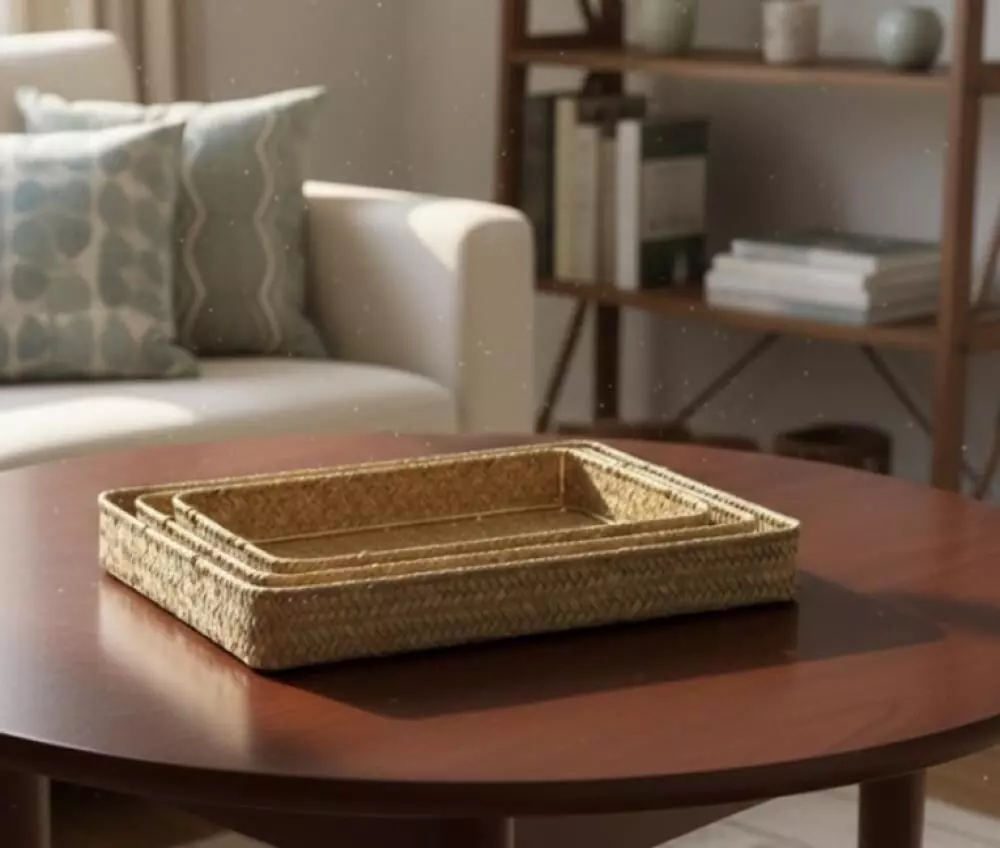 طقم صواني راتان طبيعي – أناقة طبيعية وفخامة عملية