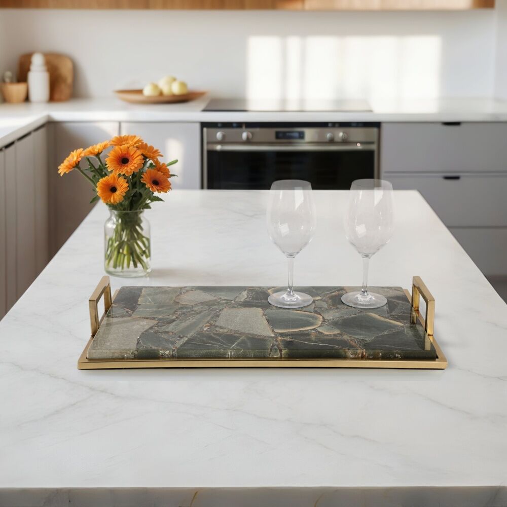 صينية أجات كبيرة باللون الأخضر هل تبحث عن طريقة لإضافة لمسة من الأناقة إلى منزلك؟ صينية أجات الكبيرة هذه باللون الأخضر ليست مجرد قطعة زينة، بل هي الحل المثالي لتجميل أي مساحة. مصنوعة من الحديد، تتميز بتصميم أنيق ونمط طبيعي للأجات، مما يجعلها قطعة فريدة من نوعها.