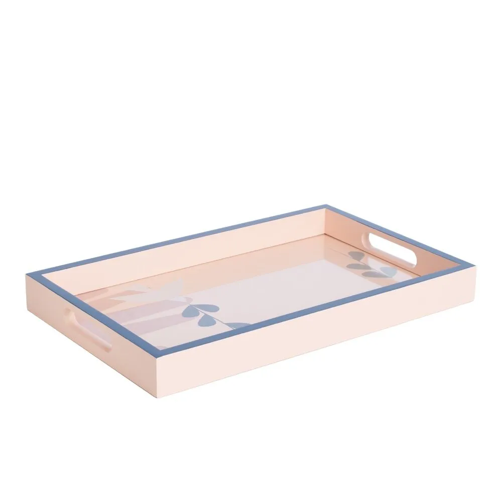 صينية تقديم بإطار أزرق مميز تصميم أنيق مزين برسومات طيور وأغصان زيتون ترمز للسلام والهدوء، لتمنح ضيافتك لمسة عصرية راقية.