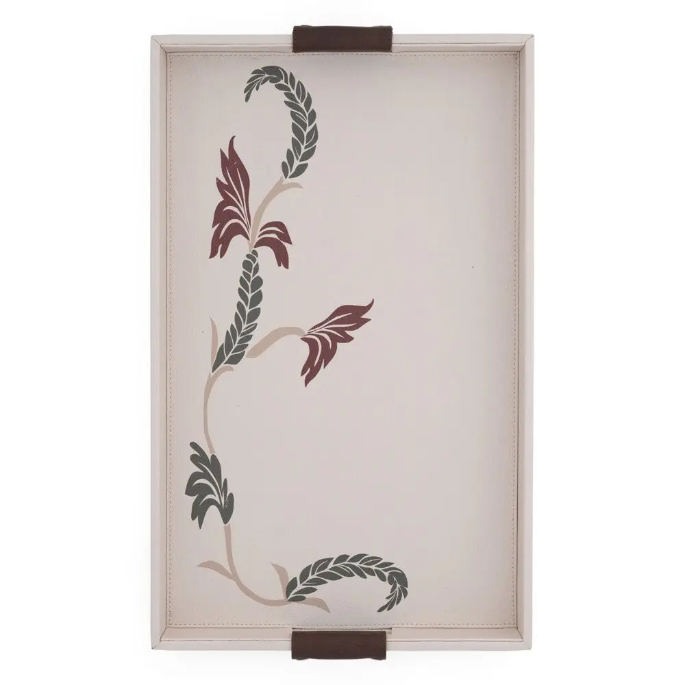 صينية تقديم أنيقة بتصميم عصري وحجم عملي يناسب مختلف الاستخدامات، تضيف لمسة فخامة وجمال إلى طاولة التقديم أو أي مساحة في منزلك، وتتميّز بتفاصيل دقيقة تعكس الذوق الراقي، مما يجعلها مثالية لتقديم الضيافة أو لاستخدامها كقطعة ديكور أنيقة، وهي مصنوعة من الخشب الليفي والجلد الصناعي لتجمع بين المتانة والفخامة وتناسب مختلف أنماط الديكور.