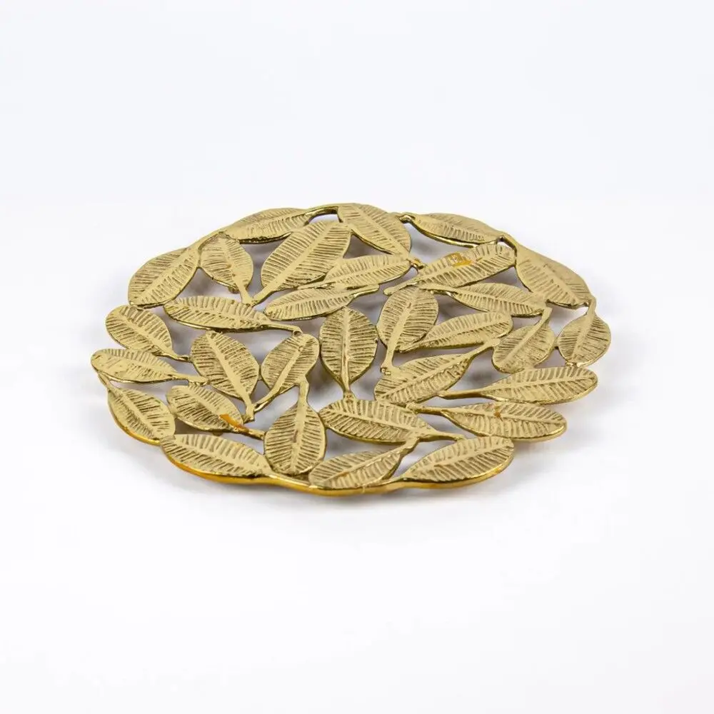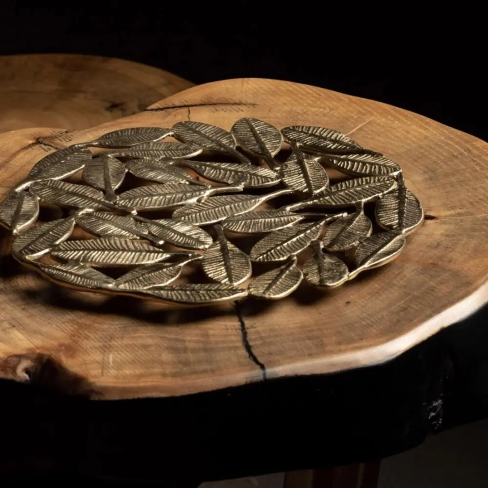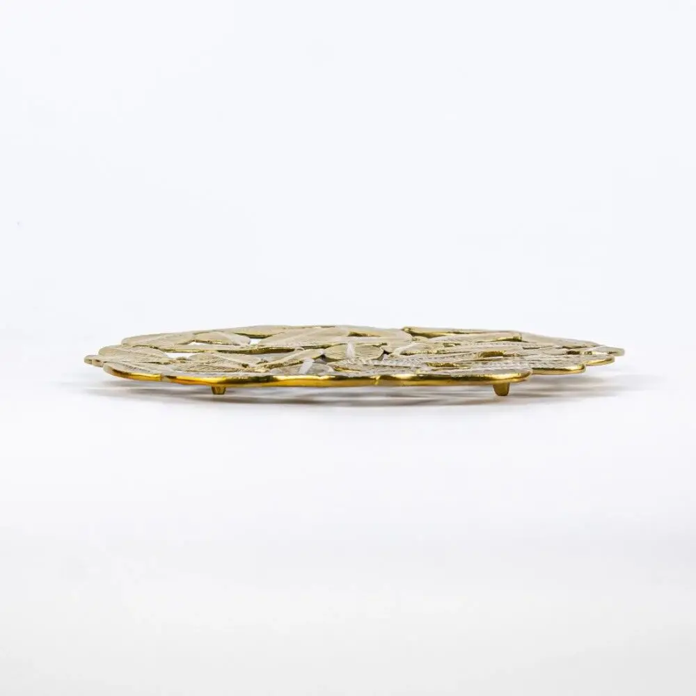 صينية ثلاثي القوائم شكل أوراق الشمبا - نحاسي
