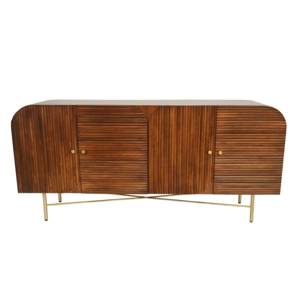 طاولة بوفيه جانبية بتصميم محفور مخطط مع أبواب على شكل قوس، تمنح القطعة حضورًا بصريًا قويًا وتفاصيل فنية تعكس الذوق الرفيع.لماذا نيرو؟ لأنها تجمع بين الحفر الفني، الخشب الطبيعي، والتصميم القوسي في قطعة واحدة تضيف شخصية وأناقة مميزة لأي مساحة. اطلبها الآن من متجر بيتونيا!