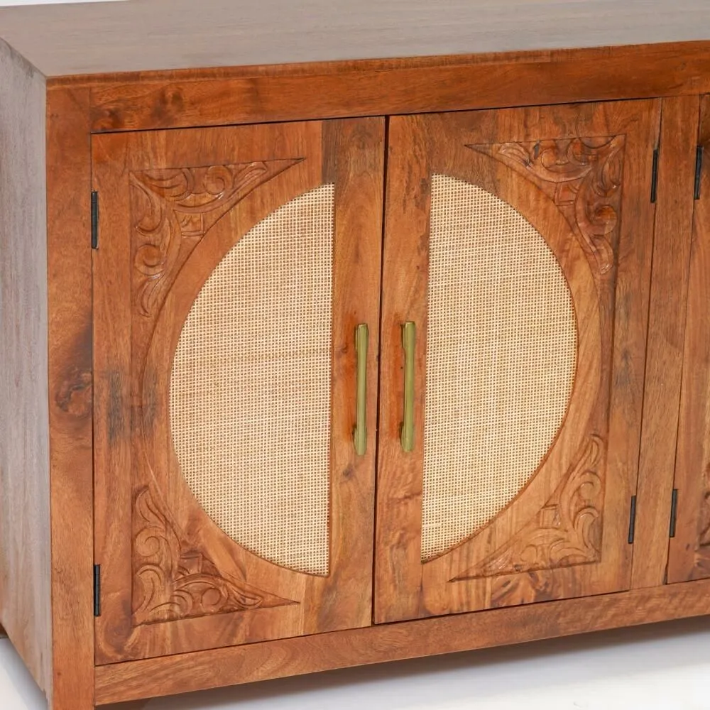 أضف لمسة دافئة وفاخرة إلى غرفة الطعام أو المعيشة مع طاولة البوفيه المصنوعة من خشب المانجو الهندي الطبيعي، بتصميم أنيق وأربعة أبواب توفر لك تخزينًا واسعًا ومنظمًا.