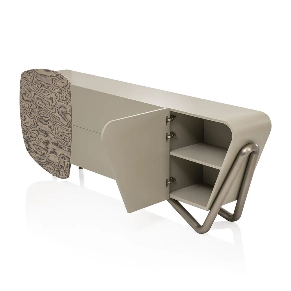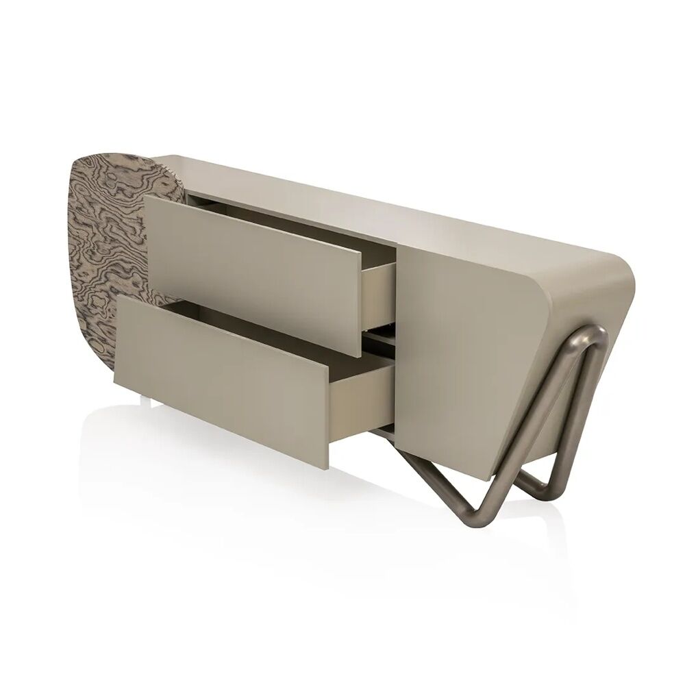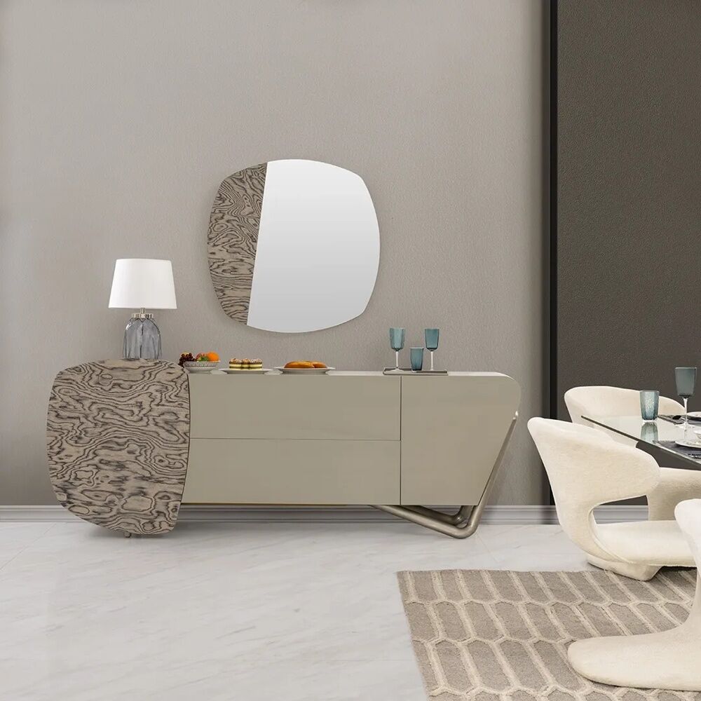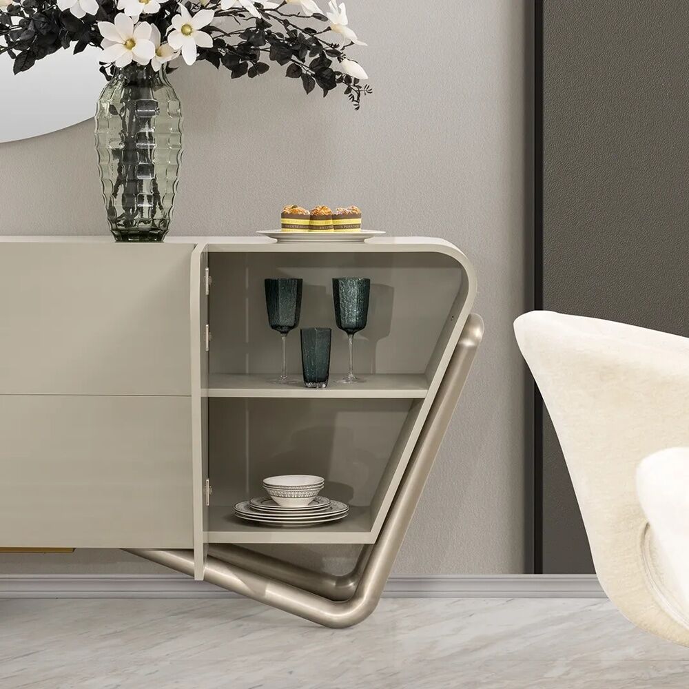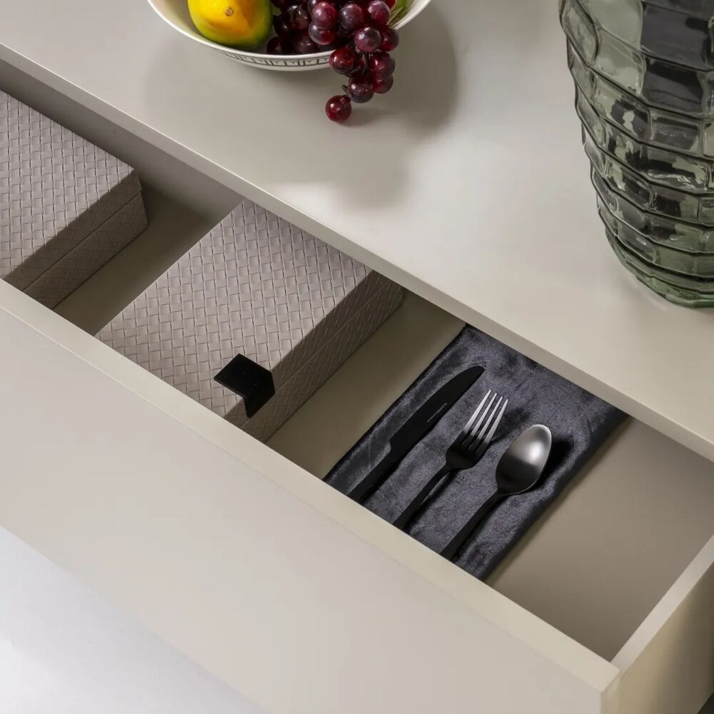 بوفيه أنيق بتصميم عصري يجمع بين الجمال والعملية، مثالي لتنظيم وتخزين أدوات المائدة أو الديكورات المنزلية. مصنوع من خامات عالية الجودة، ويتميز بمساحات تخزين متعددة تشمل أدراج وأرفف لتلبية احتياجاتك اليومية. خيار مثالي لإضافة لمسة راقية إلى غرفة الطعام أو المعيشة.