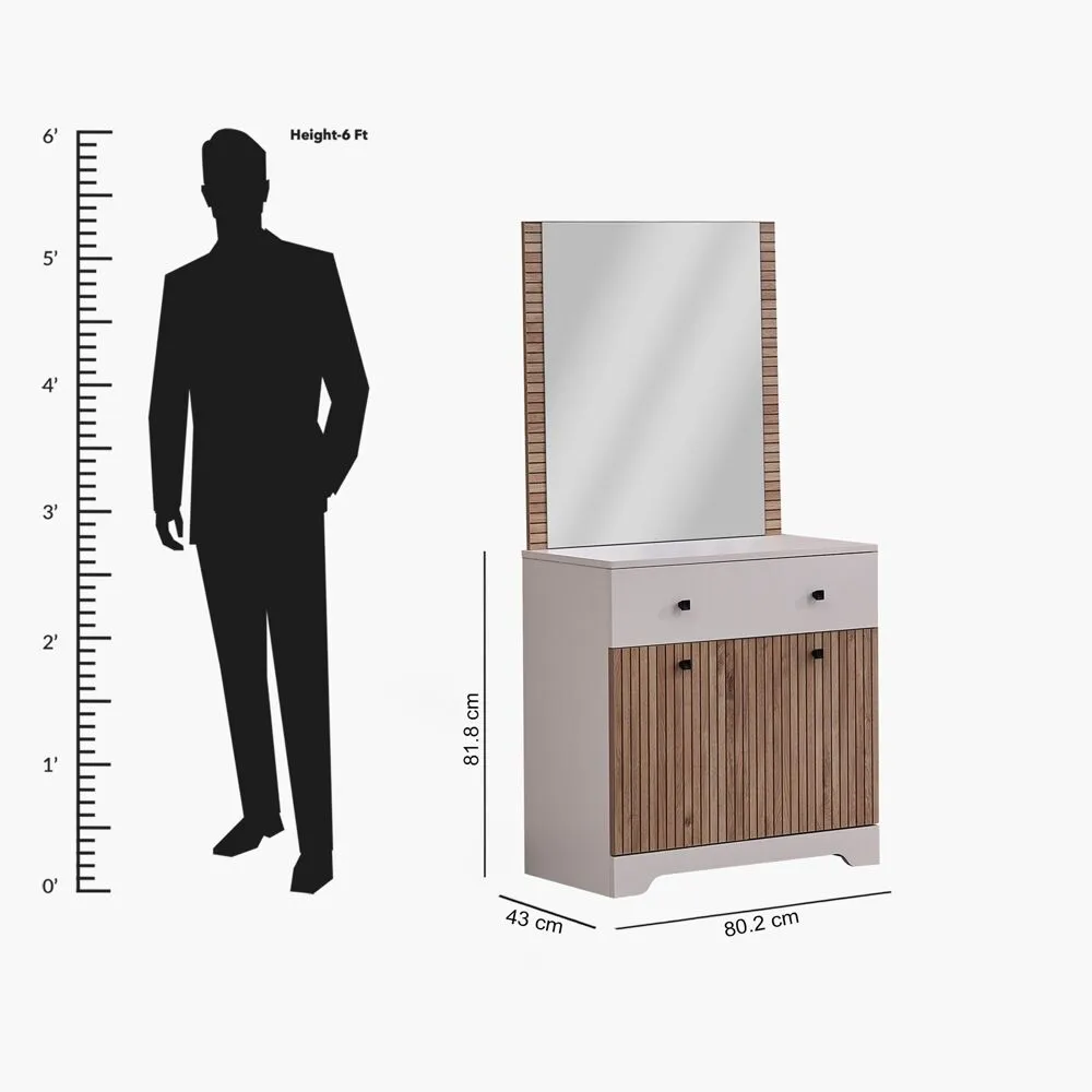 طاولة تزيين الوزن: 52.8 كجم x العمق: 43 سم x الارتفاع: 81.8 سم x العرض: 80.2 سم مرآة العمق: 1.8 سم x الارتفاع: 83.2 سم x العرض: 77 سم |