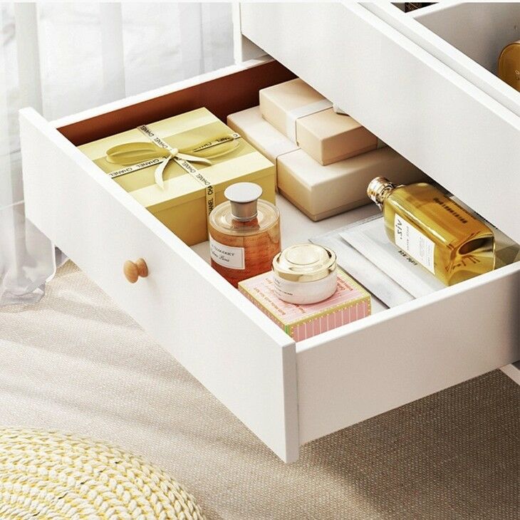 طاولة الزينة هذه مصنوعة من الخشب الصلب متينة وعملية بمساحة تخزين واسعة لجميع مستلزمات التجميل والجمال الخاصة بك.