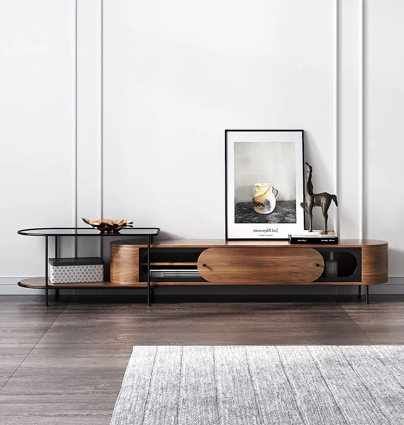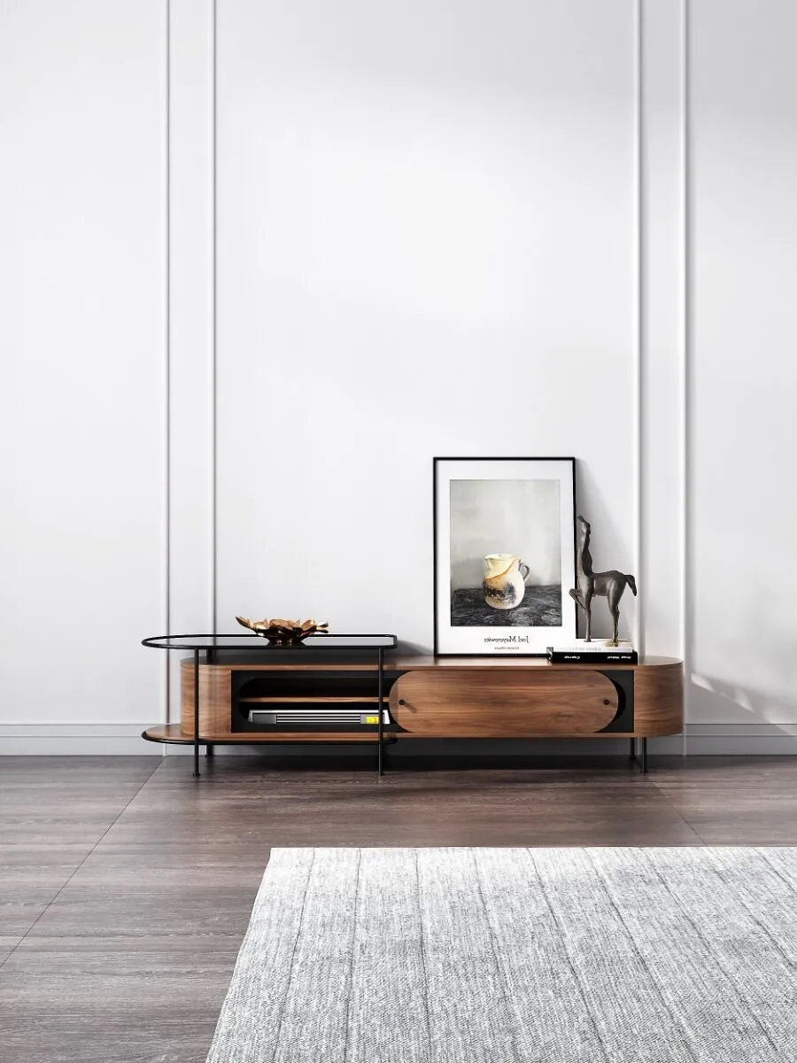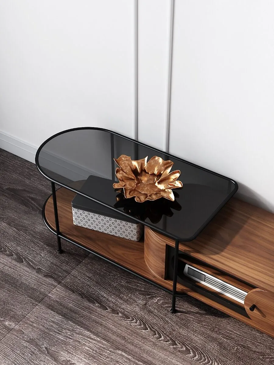 طاولة تلفزيون مع خزانة جانبية هاي غلوس، الخيار المثالي لمن يبحث عن التصميم الفاخر والوظائف العملية في آنٍ واحد.