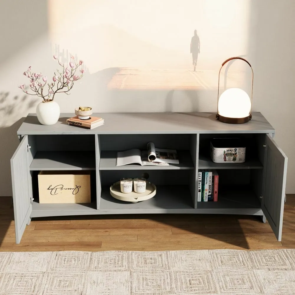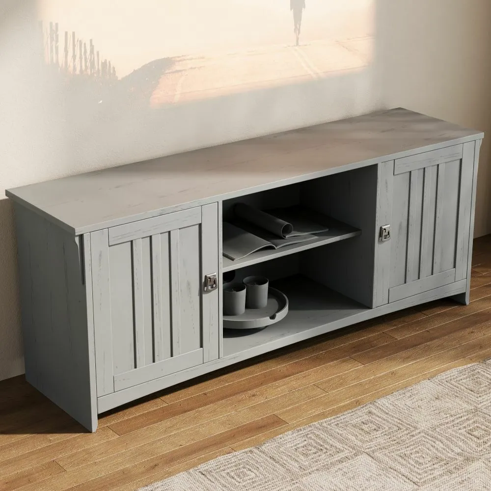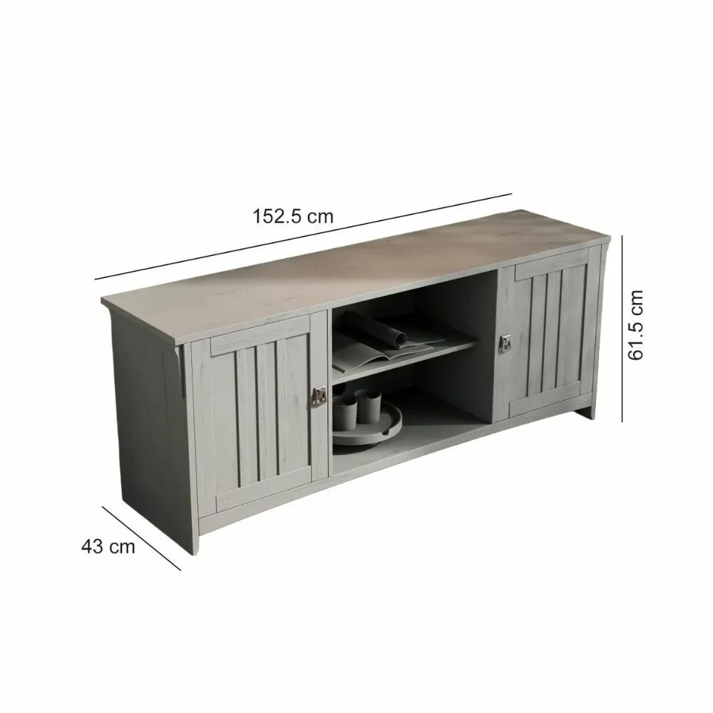اضف لمسة من الأناقة إلى غرفة المعيشة مع هذه الوحدة المصنوعة من الخشب بلون رمادي . تتميز بتصميم عملي يضم بابين جانبيين للتخزين، مع رفوف وسطية مفتوحة مثالية للأجهزة الإلكترونية أو الكتب. مزودة بفتحات خلفية لمرور الأسلاك، مما يضمن تنظيمًا أنيقًا وخاليًا من الفوضى. تصميمها البسيط والخطوط العمودية على الأبواب يجعلها قطعة مثالية تناسب مختلف أنماط الديكور.