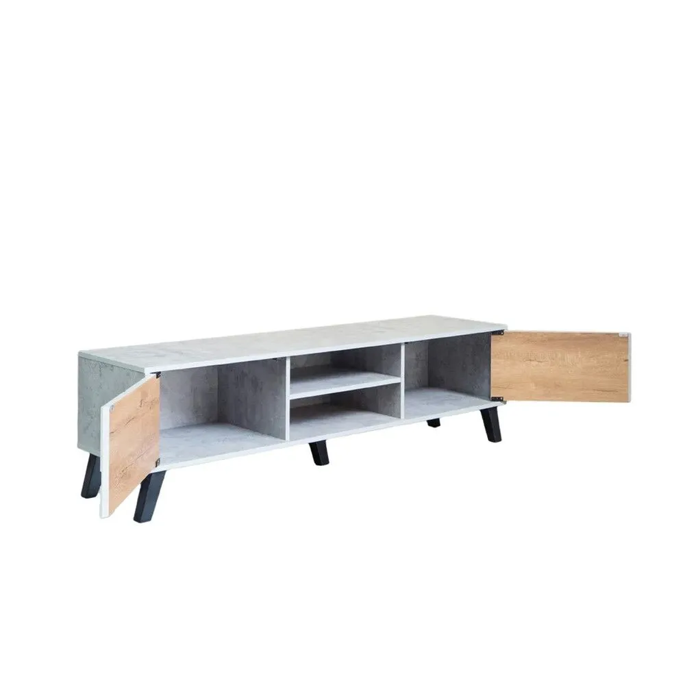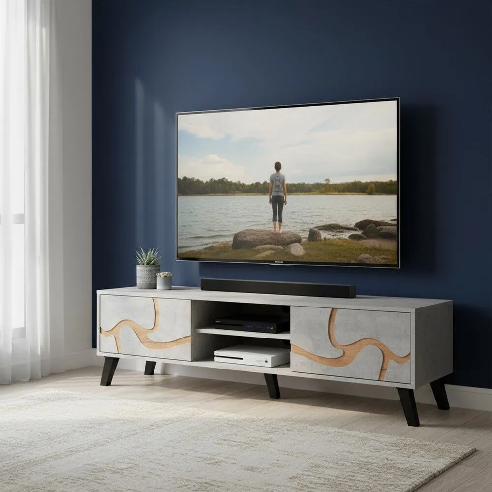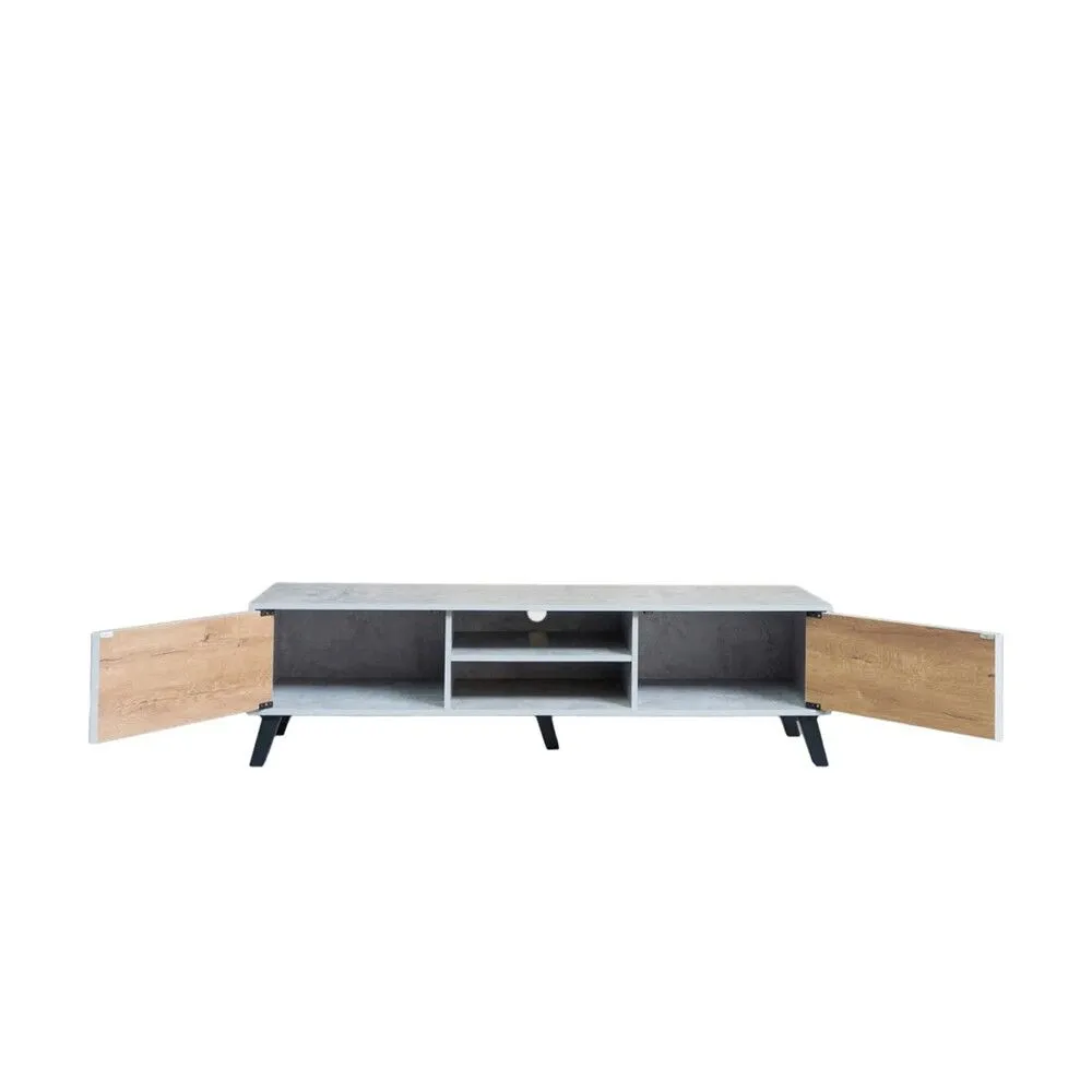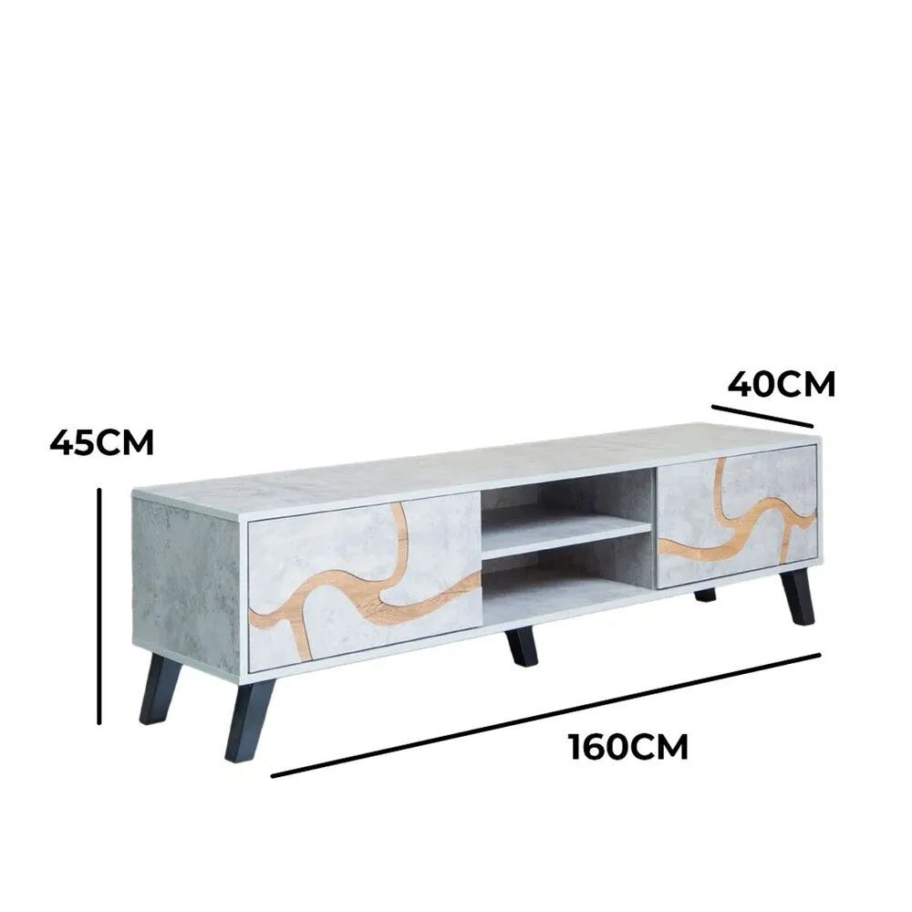 طاولة تلفزيون مستطيلة خشب ماليزي 160 سم - رمادي فاتح وخشبي
