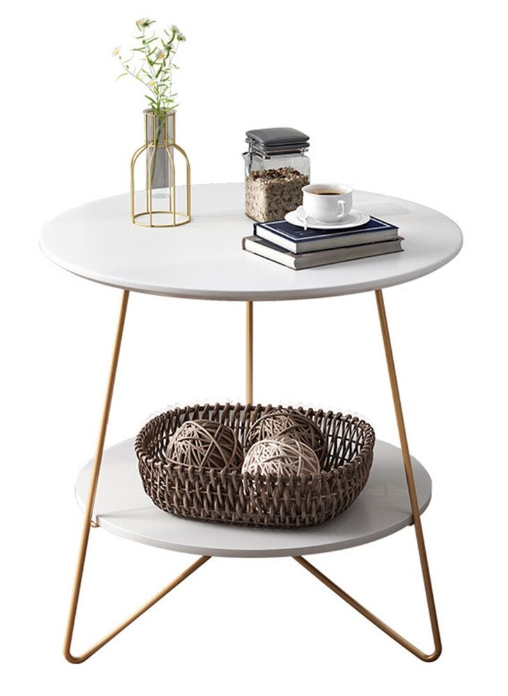 طاولة جانبية مستديرة ذات الطبقتين تتميز بتصميم بسيط وأنيق، مع سطح طاولة علوي أبيض اللون يعزز من طابعها العصري. الإطار المعدني المقاوم للصدأ يضمن ثباتًا ومتانة، كما أن الزوايا المدورة تجعلها آمنة للاستخدام في المنازل التي تحتوي على أطفال. تحتوي على طبقة إضافية في الأسفل لتوفير مساحة تخزين إضافية للأغراض اليومية مثل الكتب وأجهزة التحكم عن بعد.، مما يجعلها مثالية. سهل التنظيف والتركيب، وتجمع بين الجمال والوظائف العملية لتناسب مختلف أنماط الديكور المنزلي. اللون: أبيض.