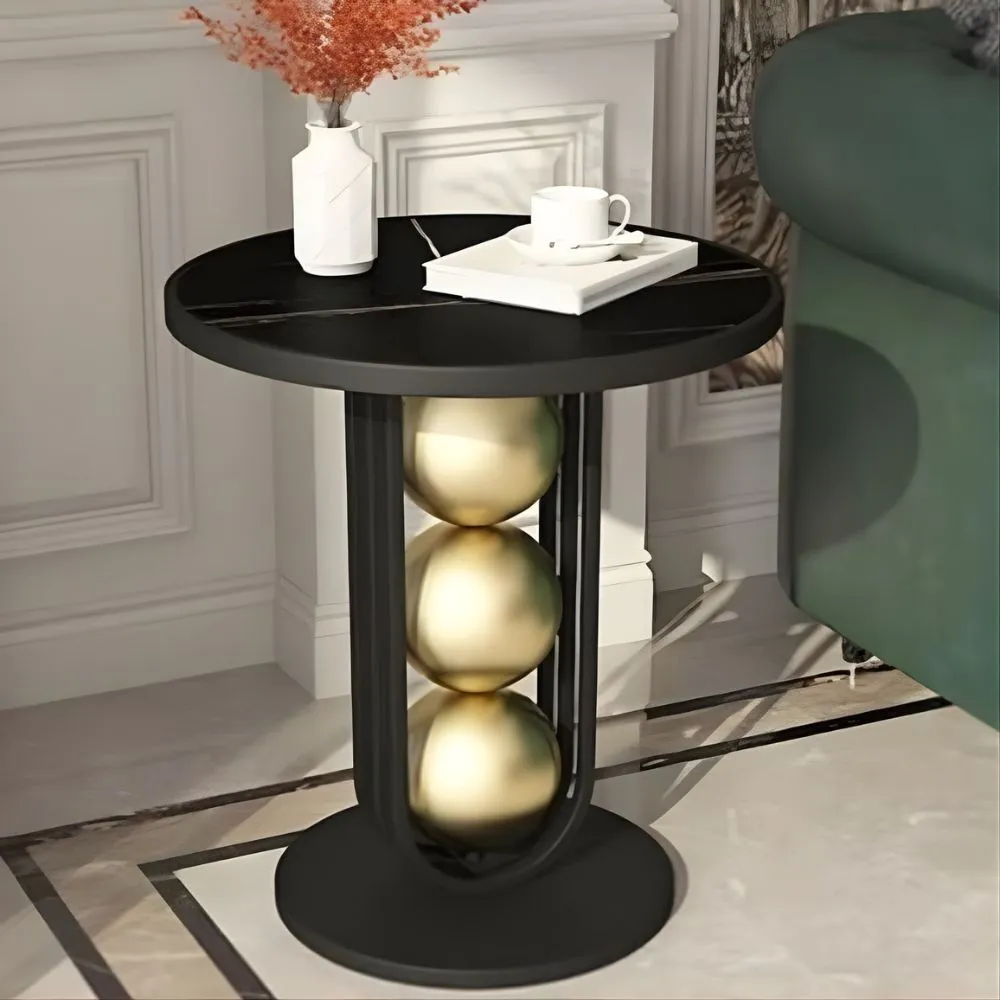 طاولة جانبية أنيقة تتميز بتصميم عصري يجمع بين الأشكال الهندسية المميزة واللمسات الفاخرة. تحتوي على سطح علوي بلمسة فاخرة وتدعمها قاعدة مبتكرة مع كرات مدمجة تضفي لمسة فنية فريدة. تناسب هذه الطاولة مختلف المساحات الداخلية، وتعد خيارًا مثاليًا لإضافة لمسة من الأناقة إلى أي غرفة.