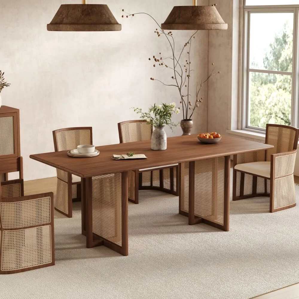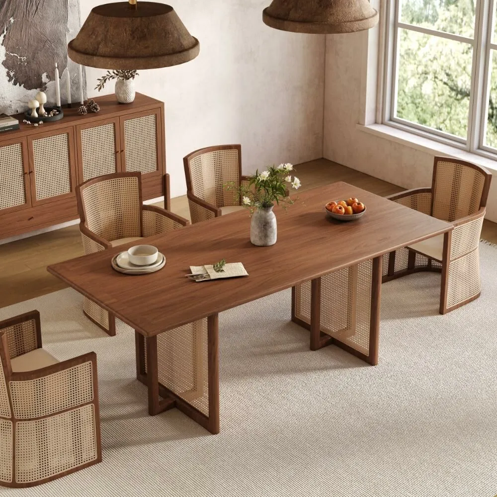 طاولة طعام راتان طبيعي 6 اشخاص من ويلو - بني وبيج.. استمتع بتجربة تناول الطعام في جو من الراحة والخامة