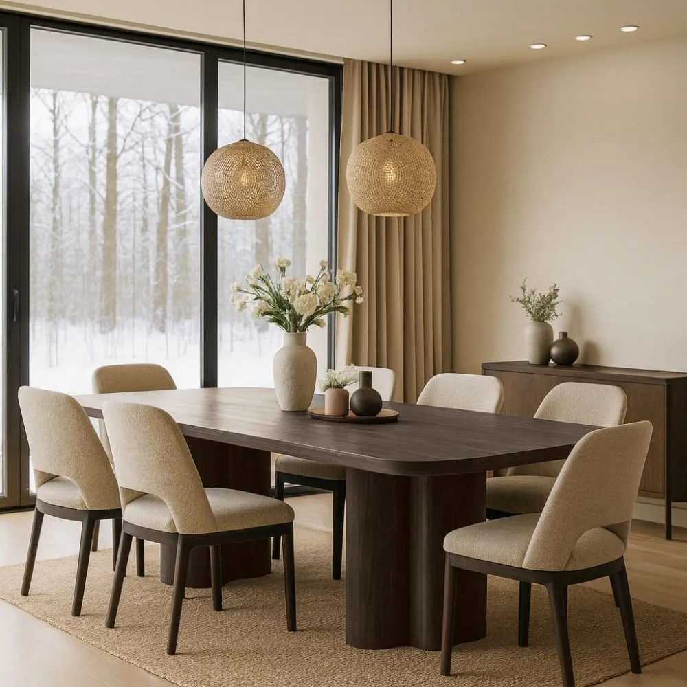 توفر طاولة الطعام ميليسا مساحة واسعة ومريحة لـ 6 أشخاص، مما يجعلها مثالية للعائلات أو التجمعات الاجتماعية.اللون البني الدافئ: