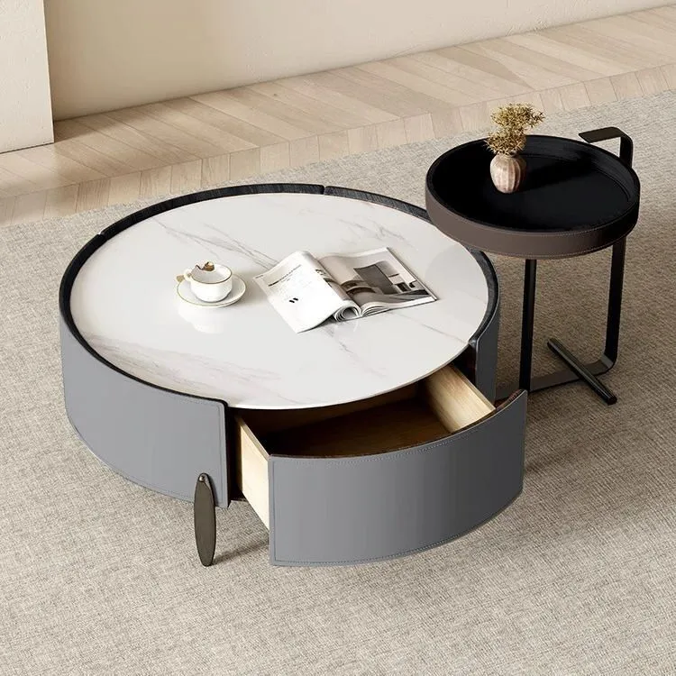 تتميز طاولة القهوة بلون رمادي وأبيض راقٍ، في حين تأتي الطاولة الجانبية بألوان البني والأسود الأنيقة. مزيج الألوان المتناسق يجعلها مناسبة لمختلف أنماط الديكور الداخلي.