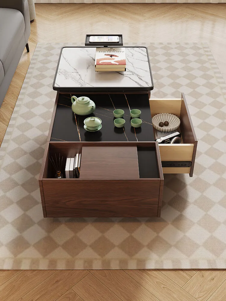 طاولة قهوة رونار خشبية و أرجل ستيل و سطح رخام و زجاج