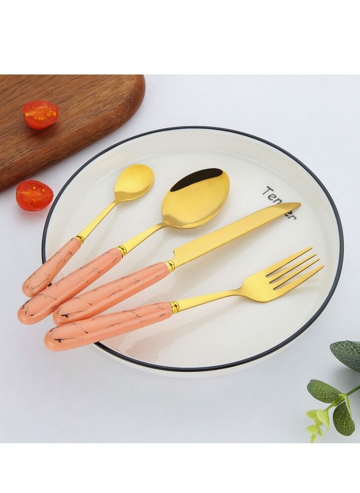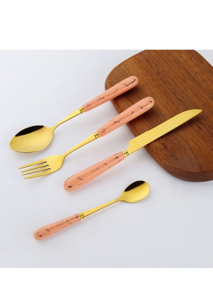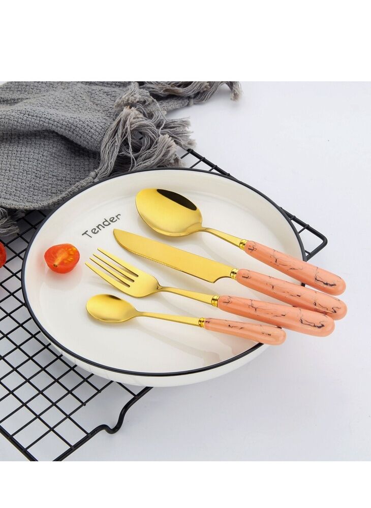 طقم أدوات مائدة صن هوم 24 قطعة مع حامل وردي