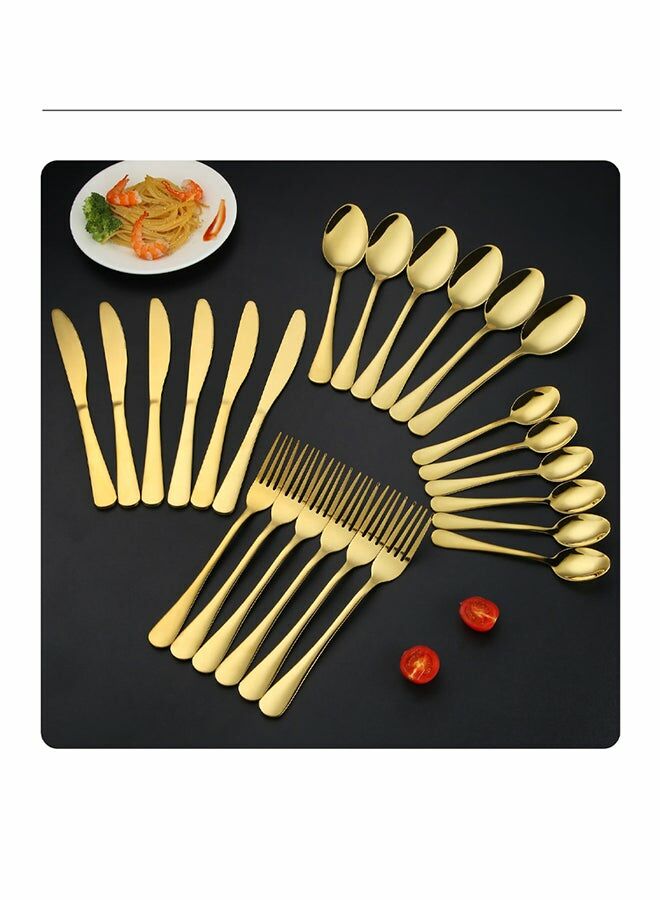 طقم أدوات مائدة ويسترن من الستانلس ستيل - 24 قطعة - ذهبي