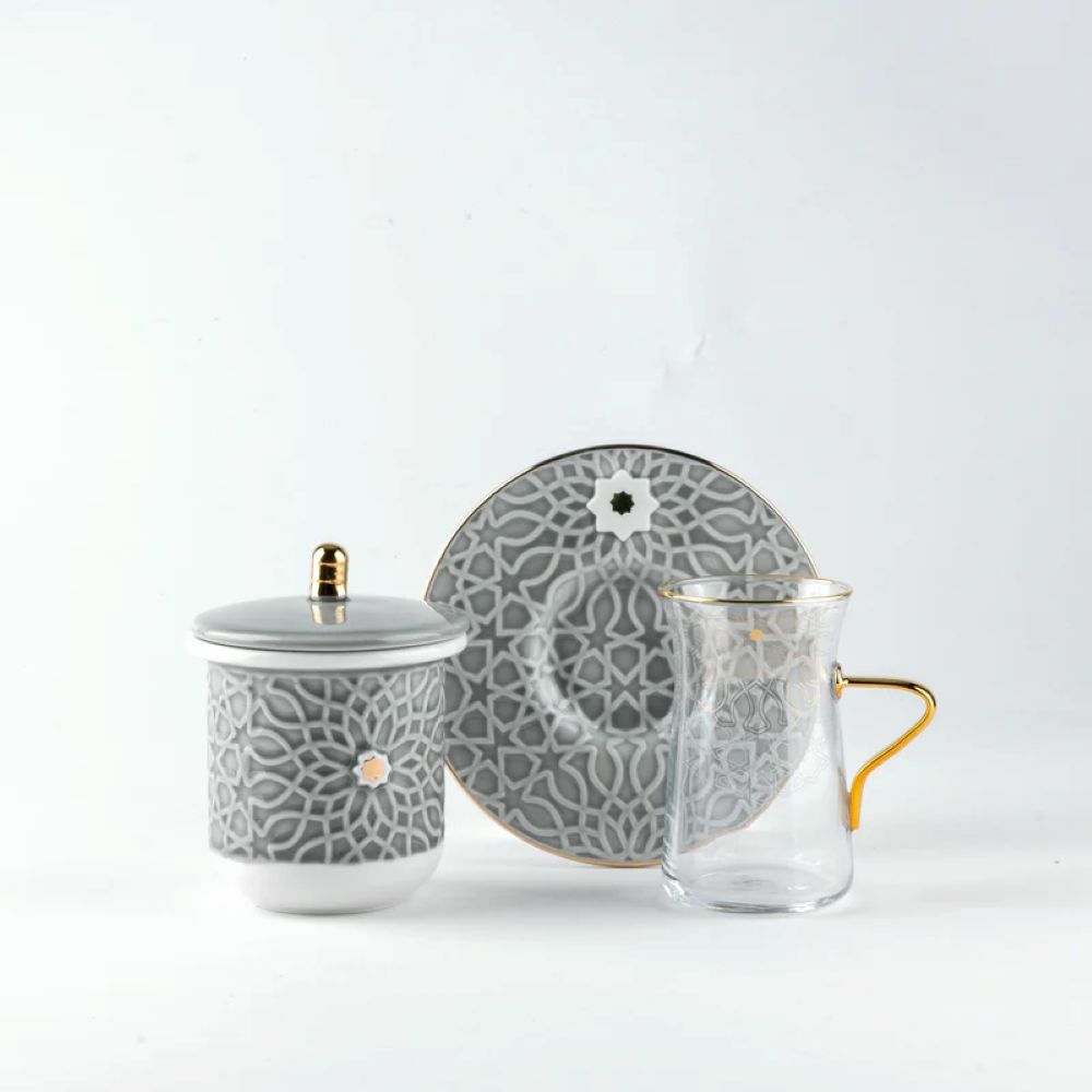 طقم بيالات شاي 13 قطعة من أصالة - رمادي و ذهبي