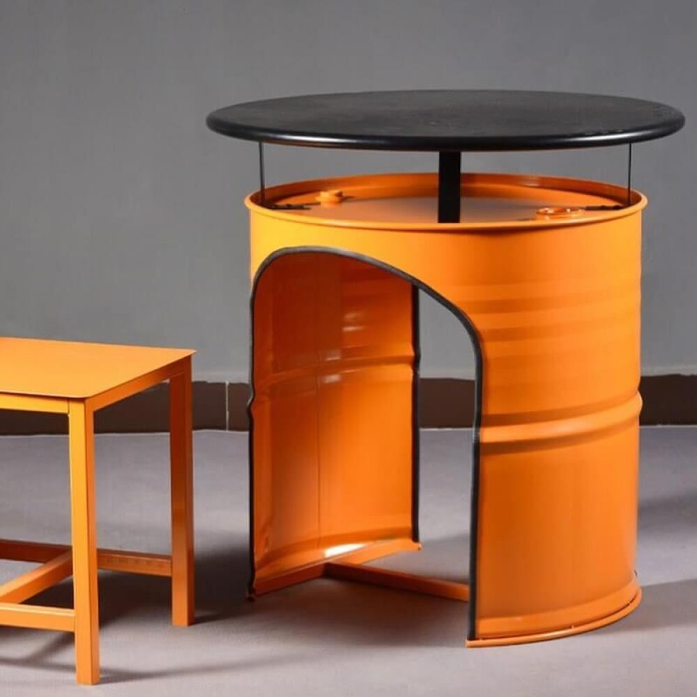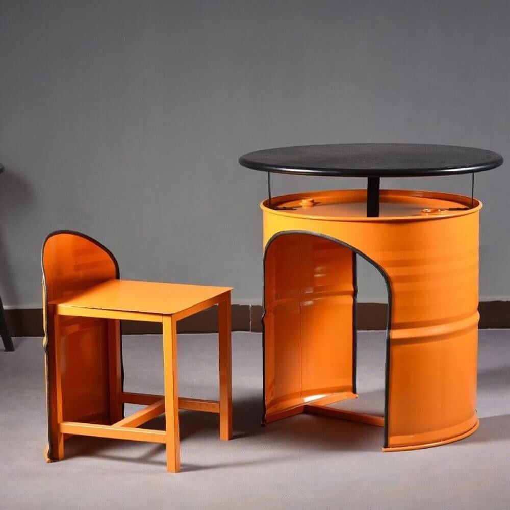 طقم جلسة خارجية عصري ومبتكر، يجمع بين الطابع العملي والتصميم الفريد، حيث يضم طاولة دائرية بسطح متين مع كرسيين قابلين للإدخال أسفل الطاولة لتوفير المساحة.