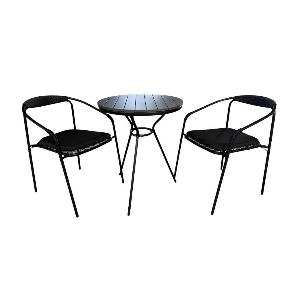 أضف لمسة من الأناقة والجمال إلى مساحتك الخارجية أو الداخلية مع طقم الطاولة والكرسيين العصري هذا، المصمم ليجمع بين الأناقة والعملية. يتميز الطقم بتصميم بسيط وجذاب، يتكون من طاولة دائرية صغيرة وكرسيين مريحين.