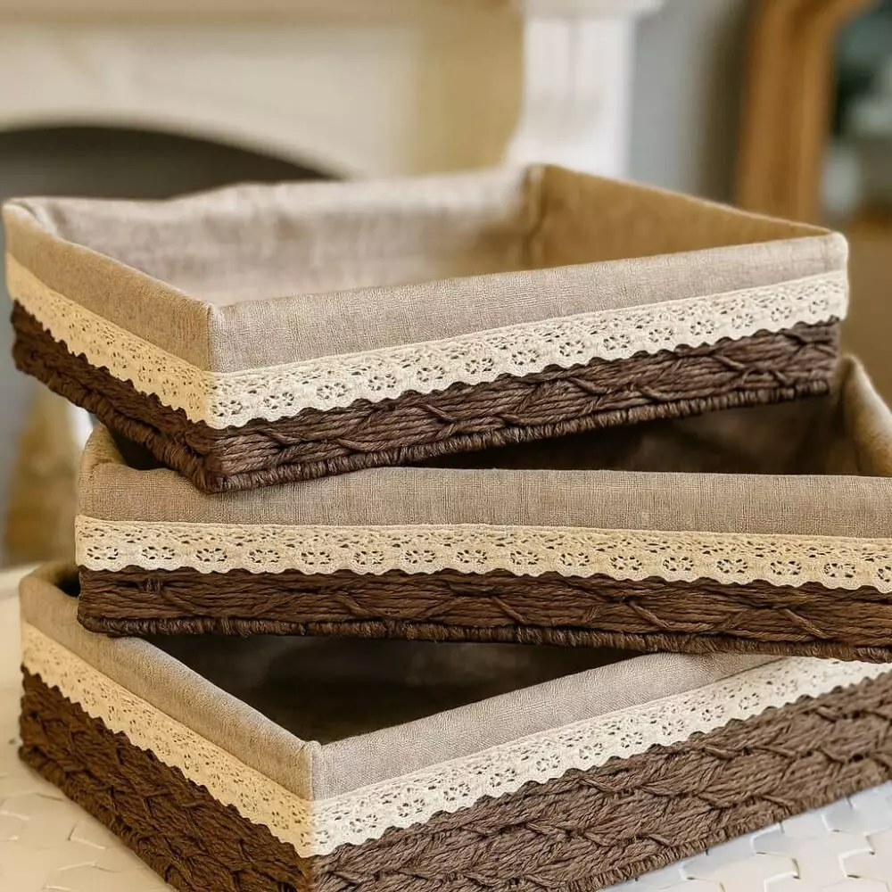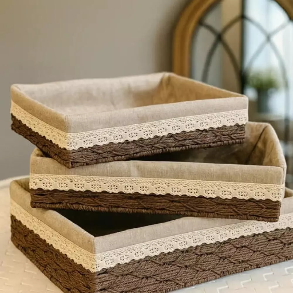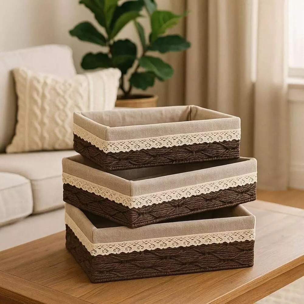 طقم سلال تخزين مكون من 3 قطع أنيقة بتصميم عملي وعصري أضيفي لمسة من الترتيب والجمال إلى منزلك مع هذه السلال المصممة بعناية لتجمع بين الأناقة، العملية، وجودة التصنيع. خيار مثالي لكل من يبحث عن حل ذكي للتخزين مع مظهر راقٍ ينسجم مع مختلف أنماط الديكور.