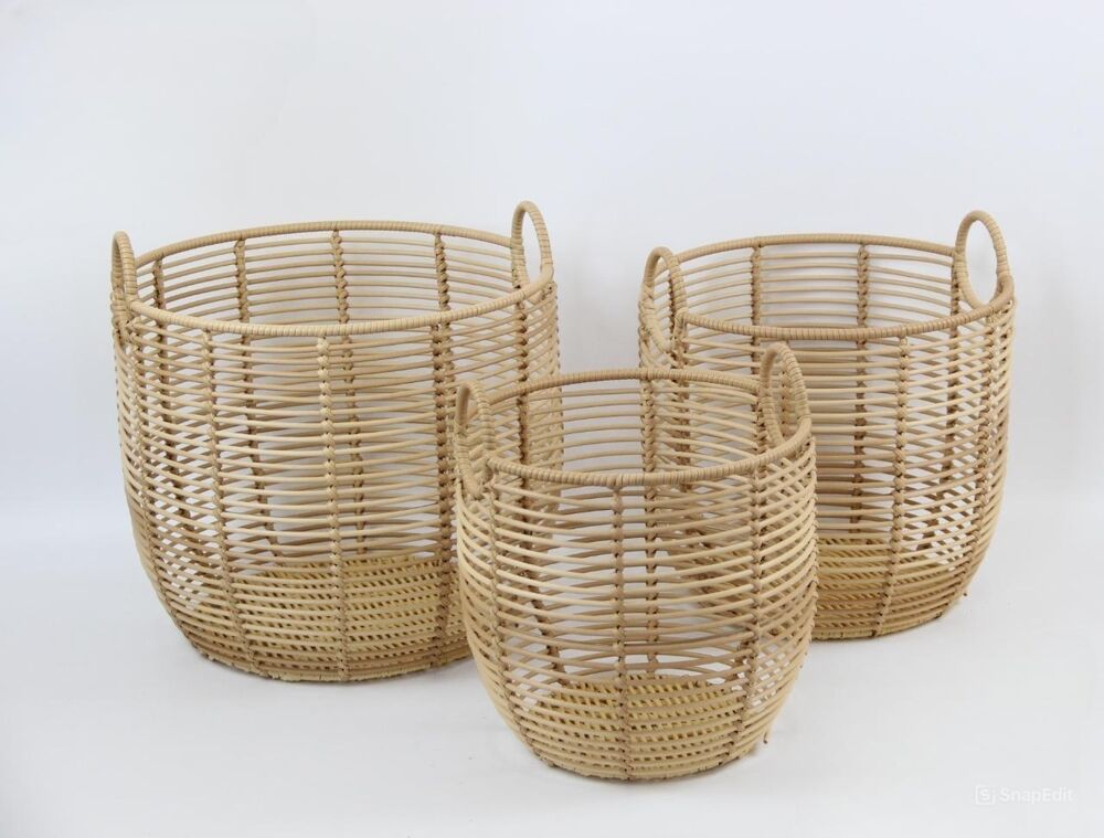 طقم سلال مصنوع من الراتان بمقبض لتمكين حملها ونقلها بسهولة, مفيدة وعملية للتنظيم و للتخزين الأشياء بسهولة.