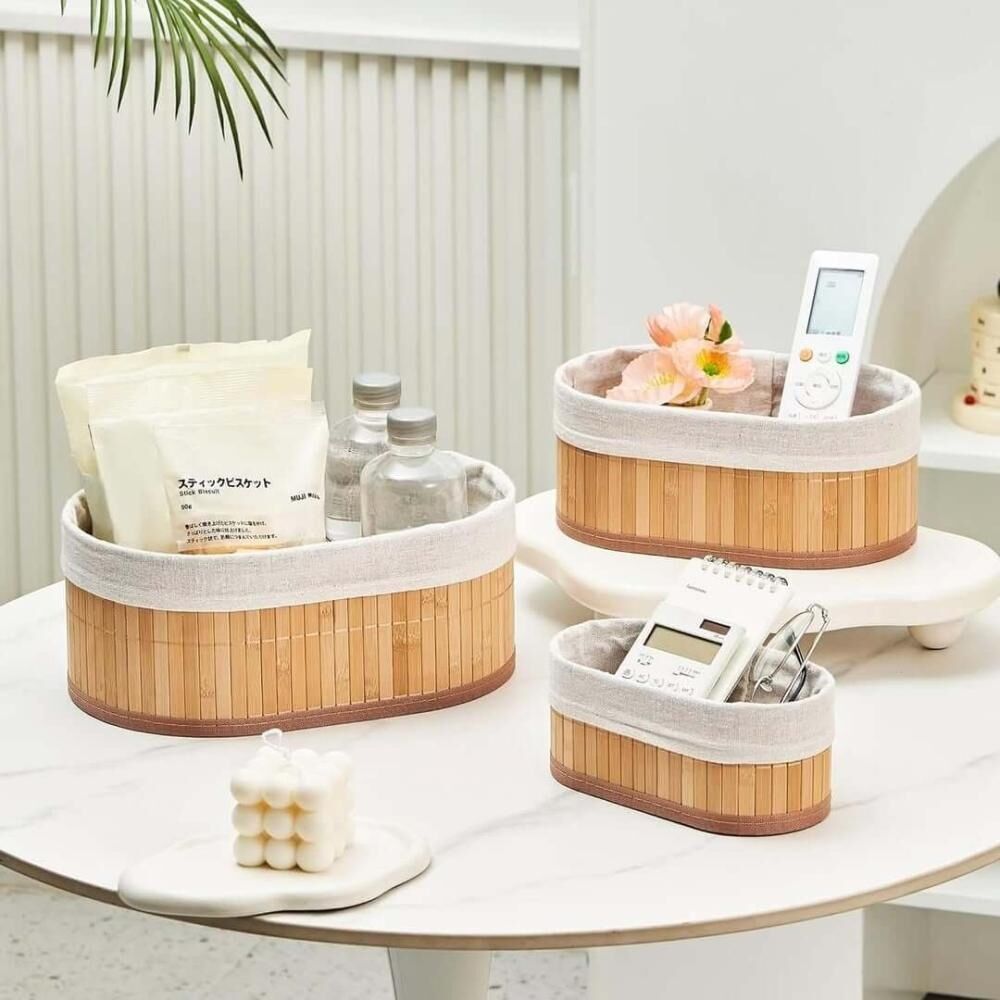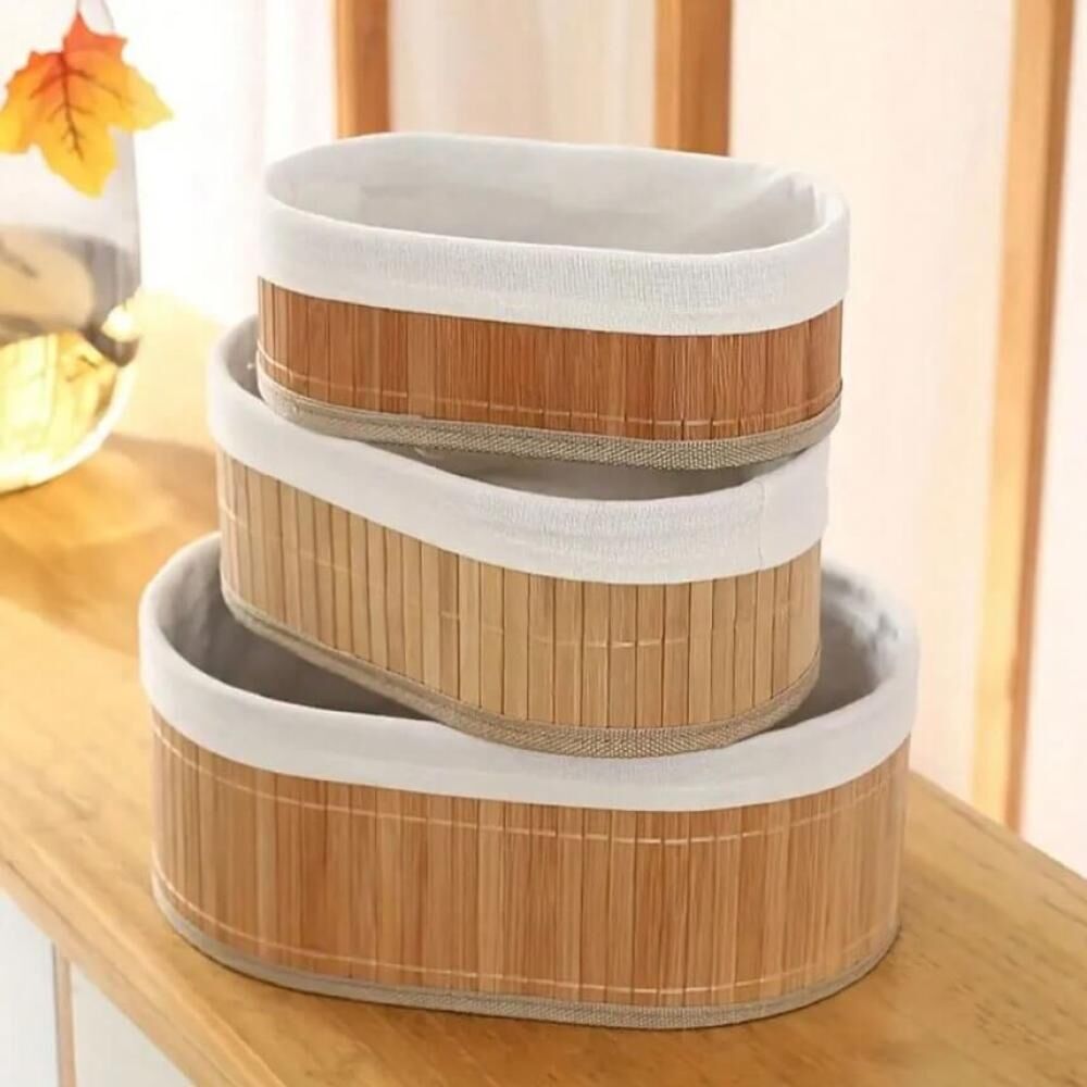 طقم سلال التخزين المصنوع من الخيزران الطبيعي يتكون من 3 قطع متعددة الاستخدامات، مصممة بشكل يتيح تنظيم المساحات بطريقة أنيقة وعملية. تتميز السلال بتصميم عصري، حيث توفر مساحة تخزين واسعة لتنظيم الأغراض الشخصية، الملابس، أو الأدوات المنزلية. الخيزران الطبيعي يضيف لمسة من الدفء والهدوء للمكان، مما يجعله مناسبًا للغرف، الحمام، أو حتى المطبخ. كل سلة تتمتع بمتانة عالية، مع تفاصيل دقيقة تجعلها قطعة مثالية للترتيب والتخزين في أي زاوية بالمنزل.