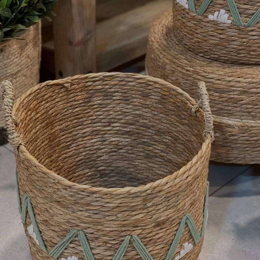 سلال خوص طبيعية يدوية تضيف لمسة من الجمال والتنظيم مصنوعة يدويًا من حبال الخوص الطبيعي بجودة عالية وتشطيب متقن تضيف طابع ريفي دافئ لأي ركن في منزلك. بتصميم عملي وأنيق يمكن استخدامها بطرق متعددة: لتخزين المفارش أو البطانيات بطريقة مرتبة. لتقديم الهدايا بأسلوب راقٍ وفريد. كحوض زراعي داخلي يضيف لمسة طبيعية للمساحات. لتنظيم الأدوات أو الألعاب أو حتى كعنصر ديكوري بحد ذاته. تتوفر بثلاثة أحجام مختلفة تناسب كل الاحتياجات، ومزينة بنقوش تضيف لمسة عصرية على الخامة الطبيعية. مصنوعة يدويًا بعناية خامة طبيعية 100% مثالية للديكور الريفي والبوهيمي.
