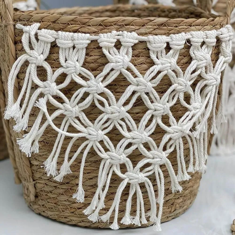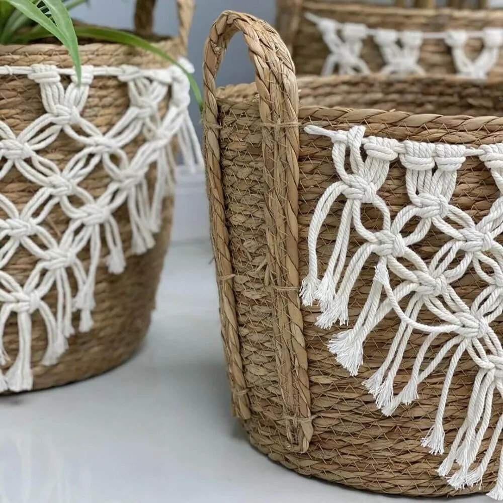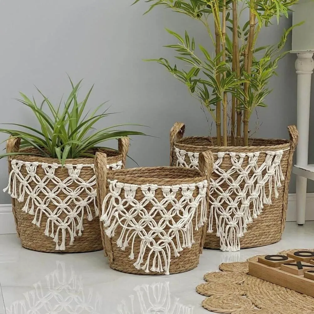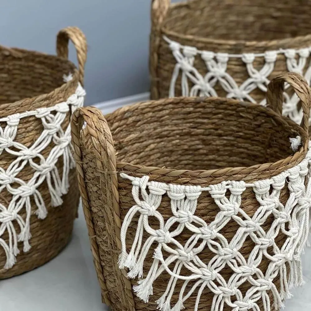 طقم سلال من القش والمكرمية – 3 قطع