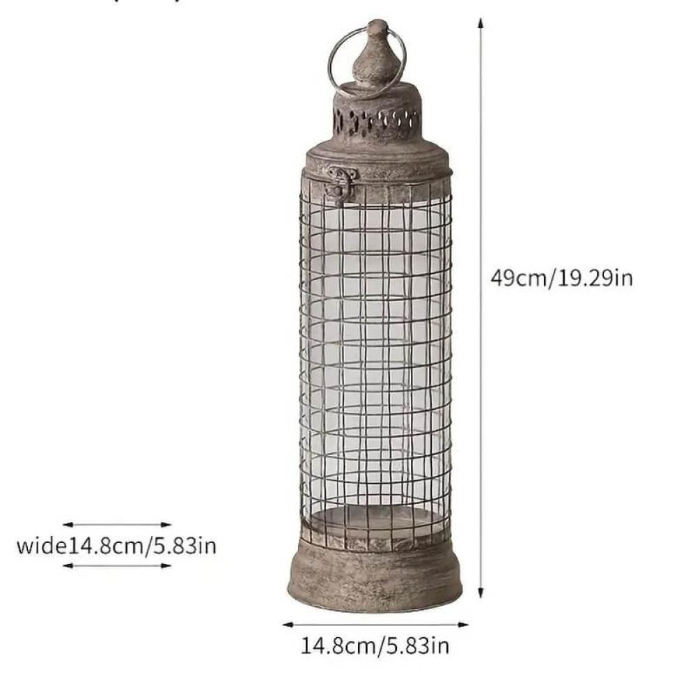 حامل شموع بتصميم قفص – تشطيب عتيق أضف لمسة من السحر الكلاسيكي والأناقة العتيقة إلى ديكور منزلك مع هذا الحامل المميز للشموع. يأتي بتصميم قفص معدني .هيكل حديدي بتفاصيل دقيقة وتشطيب ريفي عتيق يضفي على المكان دفء وهدوء لا مثيل له.