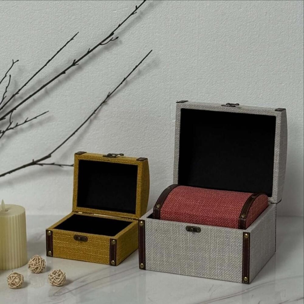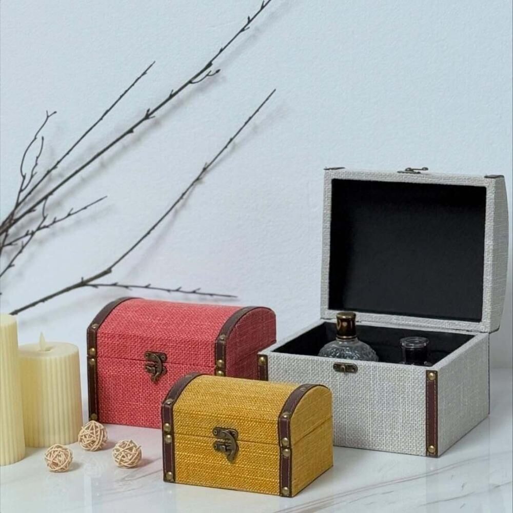 طقم صناديق قماش 3 قطع أضيفي لمسة فنية ودفء شرقي إلى ديكور منزلك مع صناديق لورا الديكورية. مصنوعة بعناية من خامات عالية الجودة مثل الخشب المغطى بالقماش، وتتوفر بتشكيلة ألوان مبهجة، تجعلها مثالية لتزيين الطاولات، الرفوف، أو زوايا المجالس.