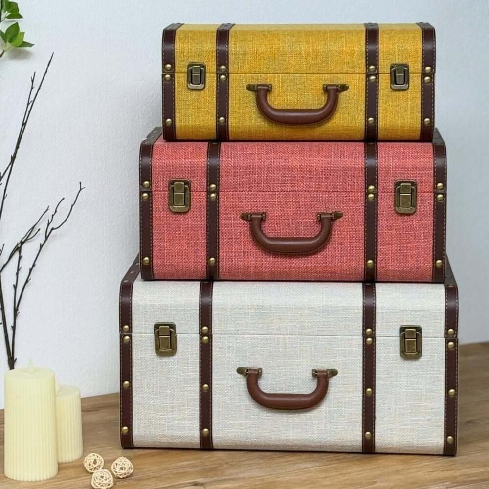 طقم صندوق تخزين جلد 3 قطع الخامة : خشب ملبس بقماش أضيفي لمسة فنية ودفء شرقي إلى ديكور منزلك مع صندوق تخزين لورا الديكورية. مصنوعة بعناية من خامات عالية الجودة مثل الخشب المغطى بالقماش، وتتوفر بتشكيلة ألوان مبهجة، تجعلها مثالية لتزيين الطاولات، الرفوف، أو زوايا المجالس.